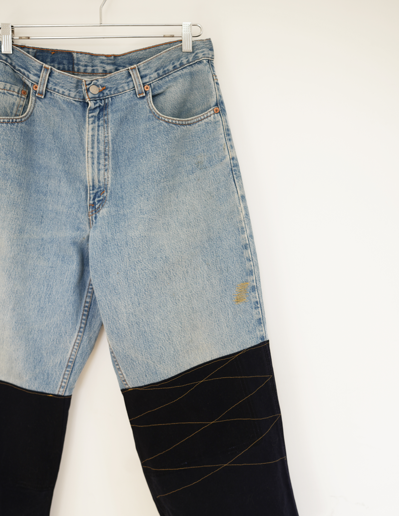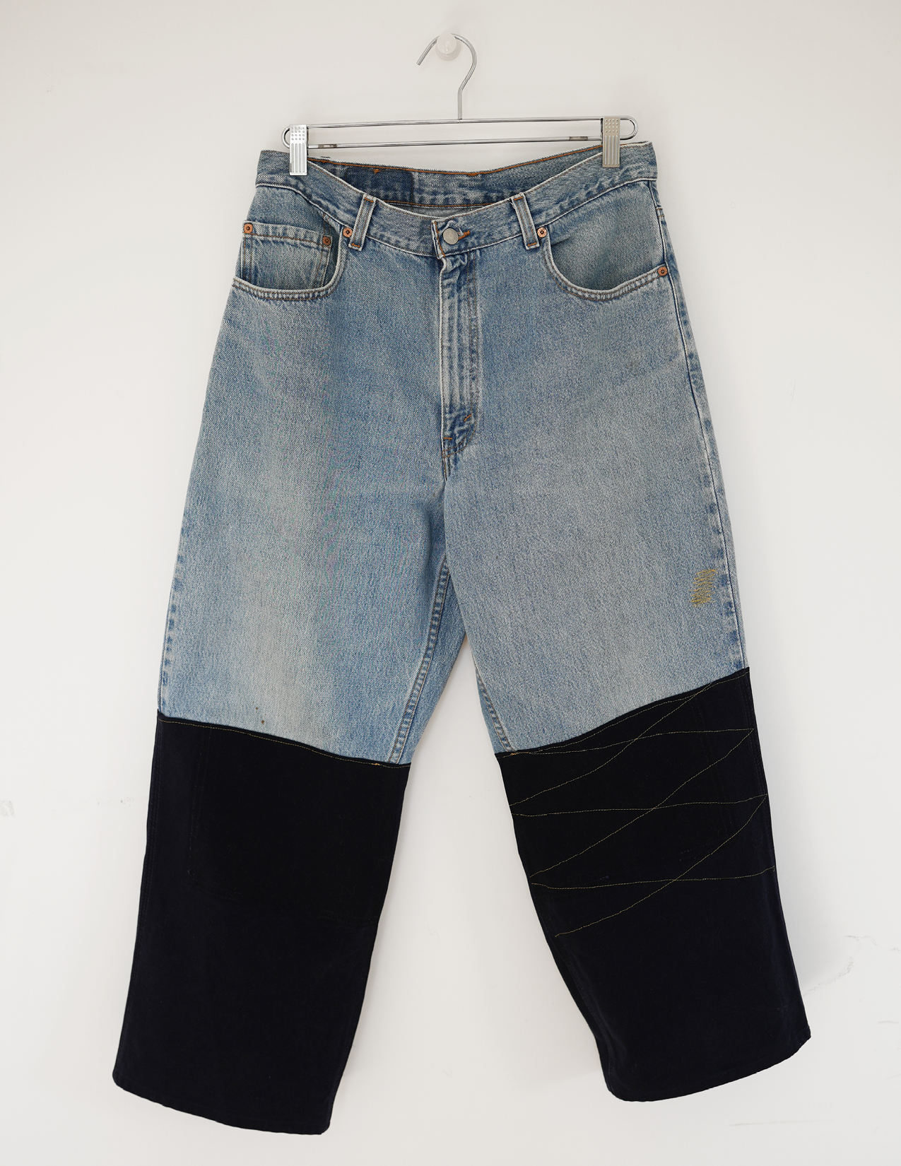 Legs: NAVY WORKER PANT W/ YELLOW CONTRAST STITCH