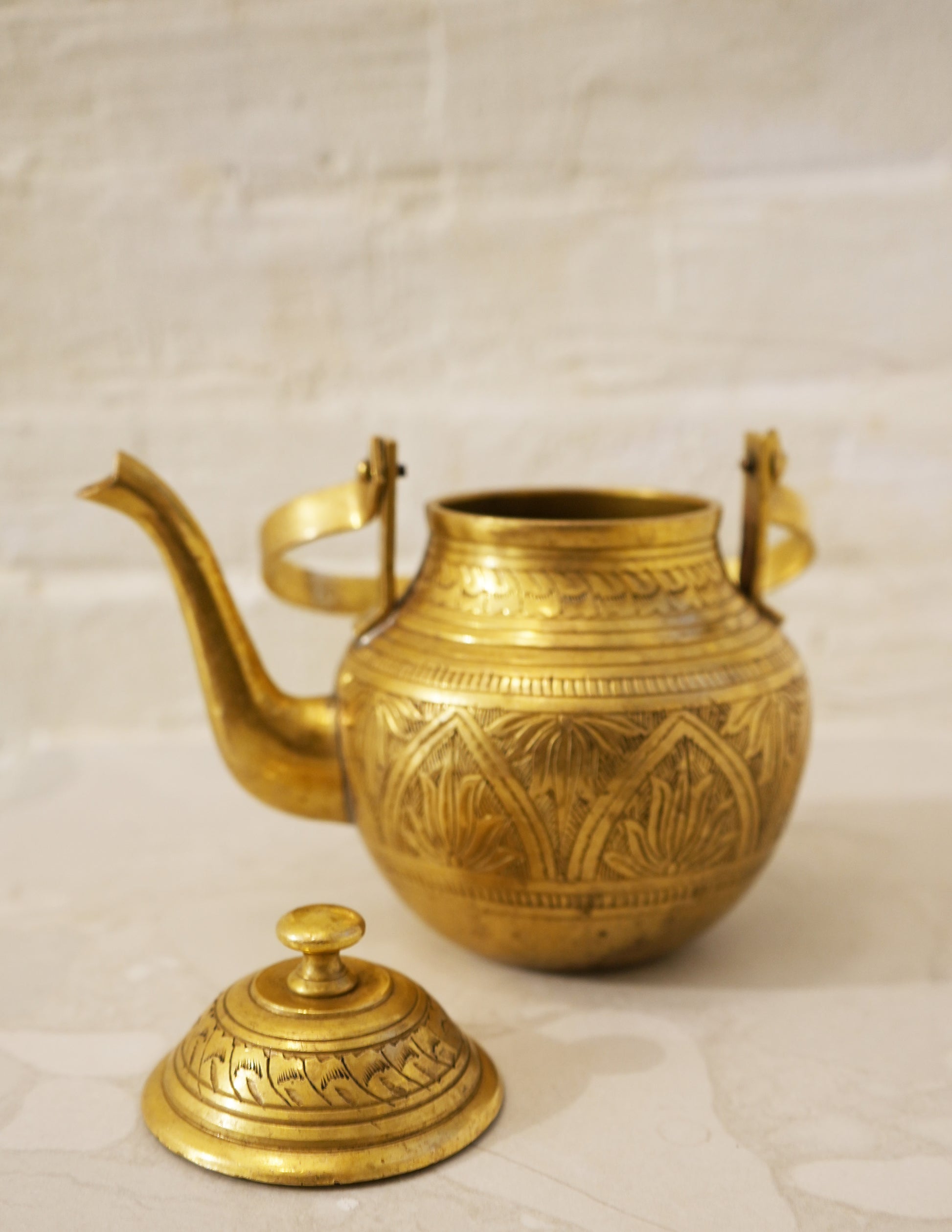 Elevate your tea drinking experience with our Antique Brass Teapot. Featuring intricate embroidery and a beautiful gold color, this vintage teapot is made with high-quality brass material. Add a touch of elegance to your kitchen with this unique find.