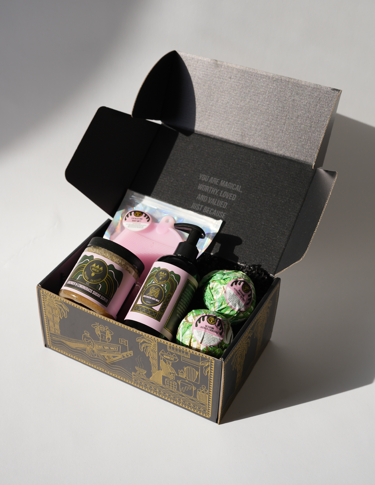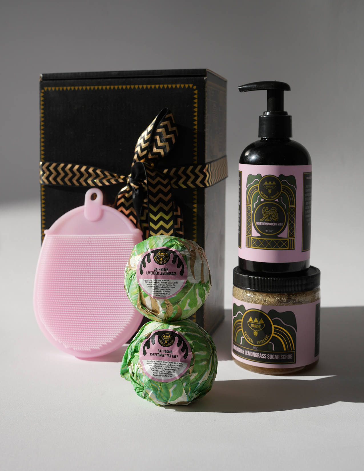 -Lavender & Lemongrass Sugar Scrub: organic sugar-based scrub infused with a delightful lavender and lemongrass scent.