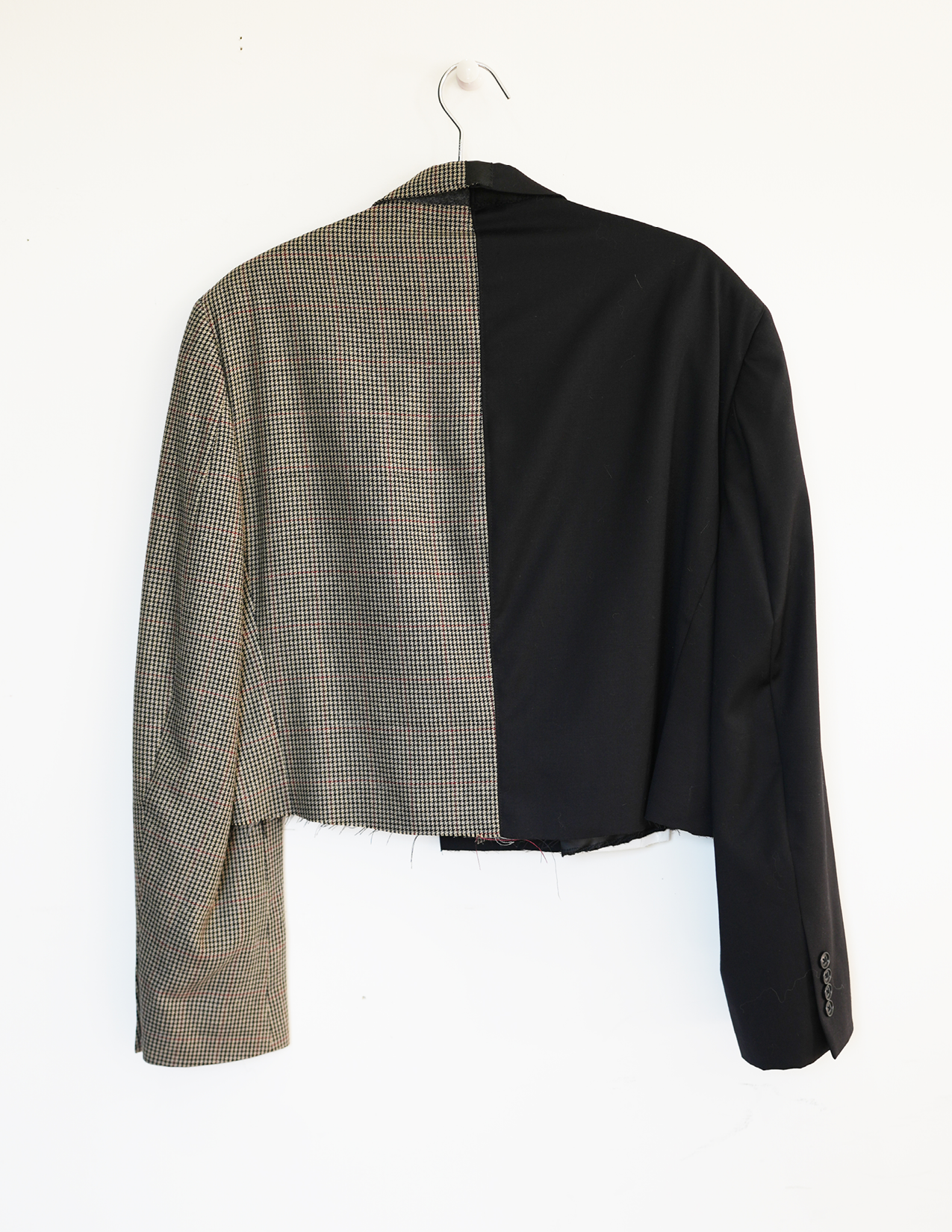 XL/XXL Black & Brown Houndstooth Cropped Mixed Blazer