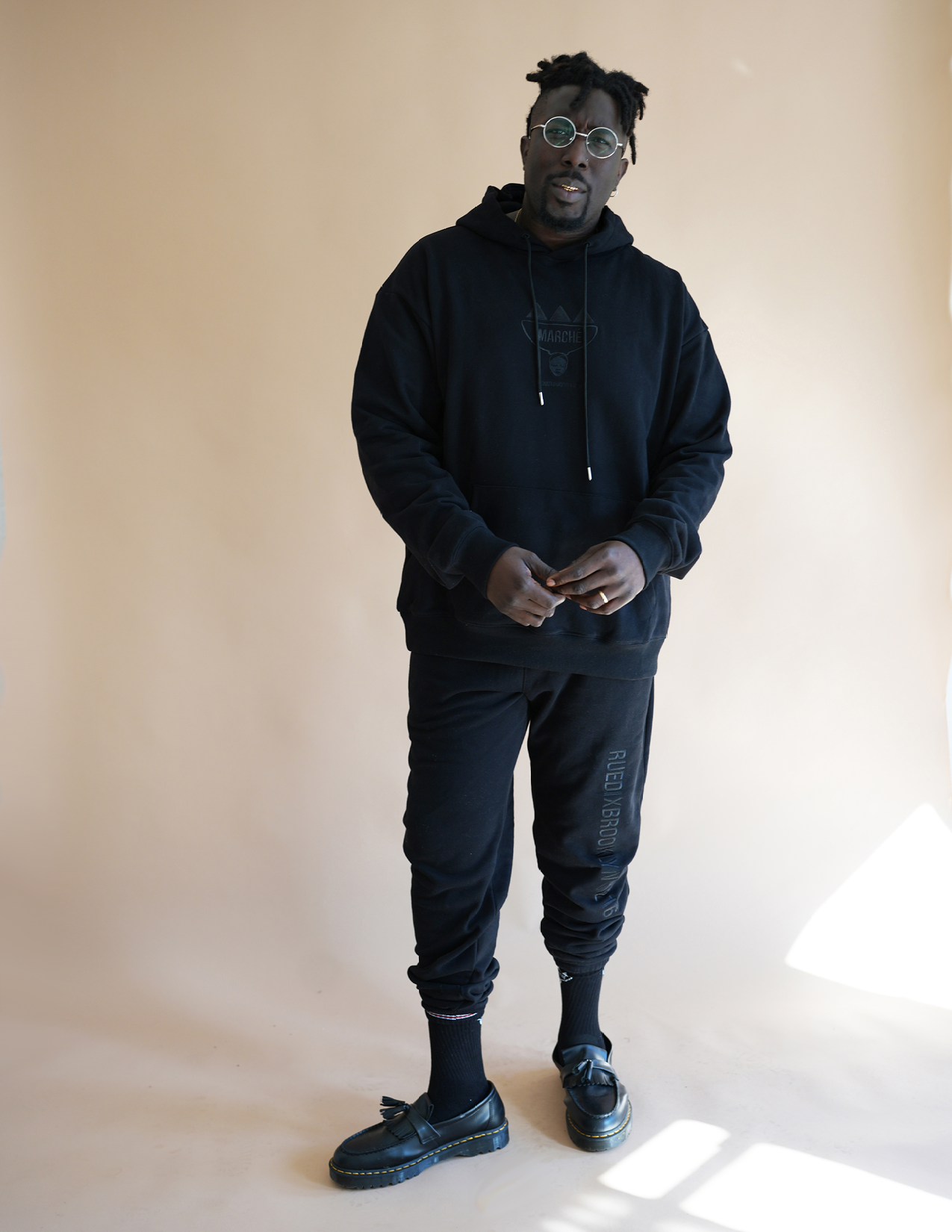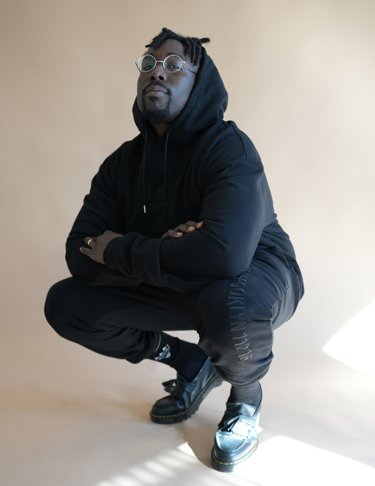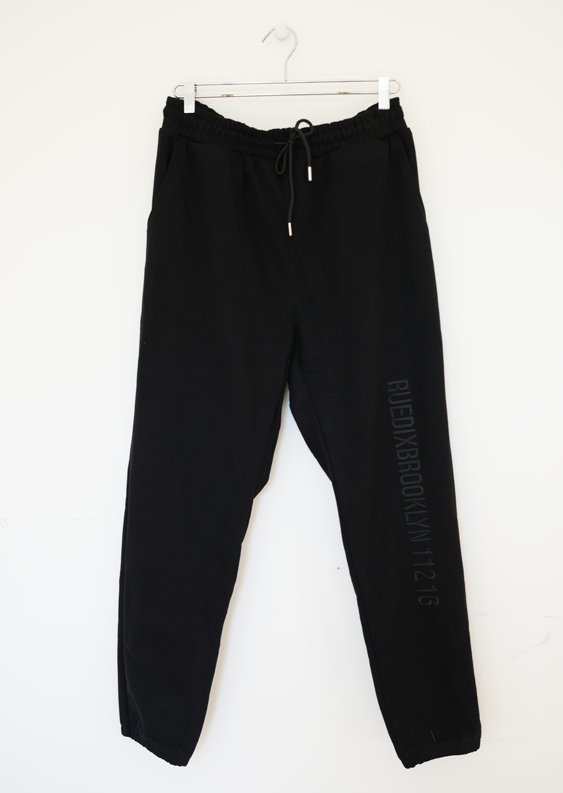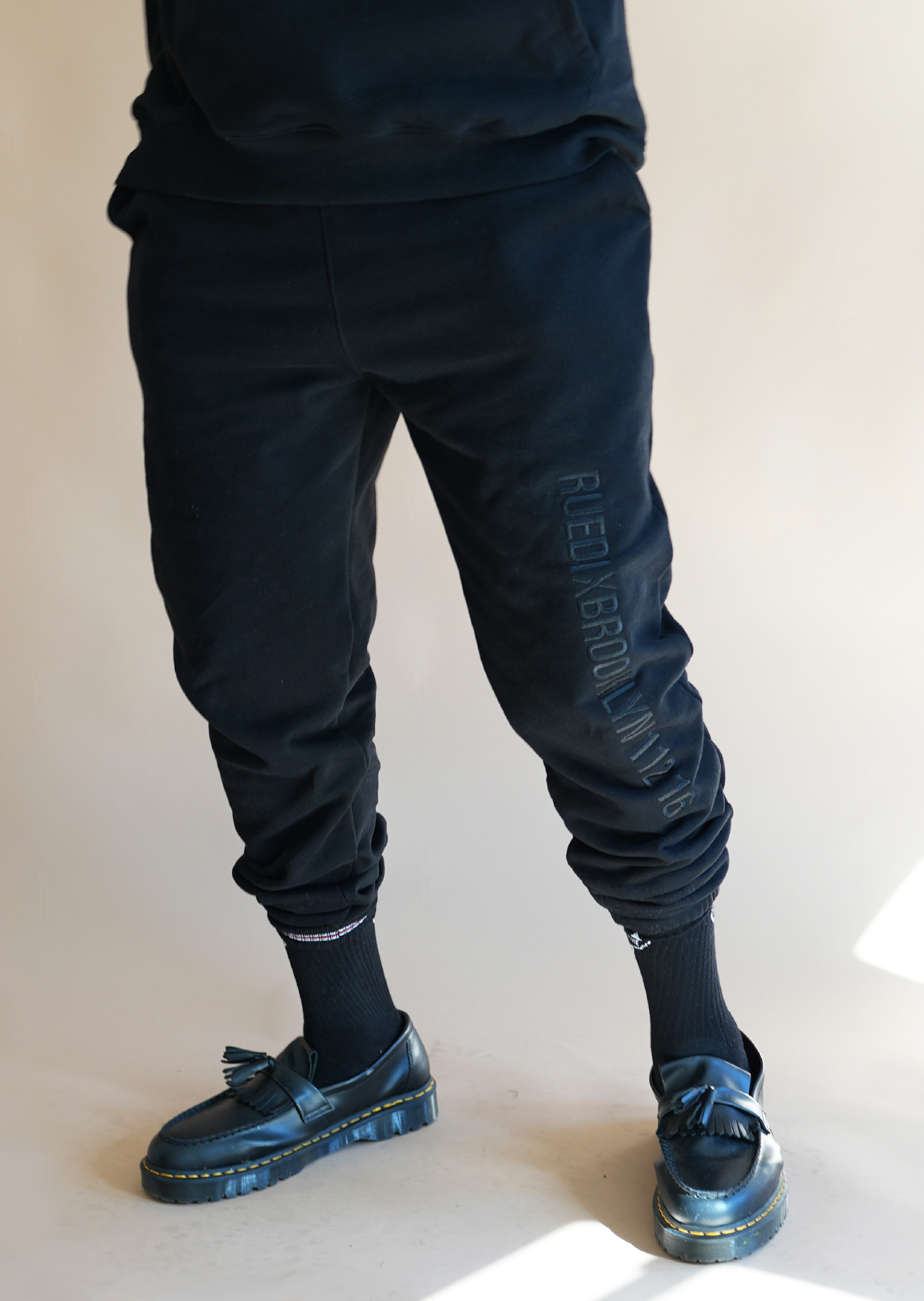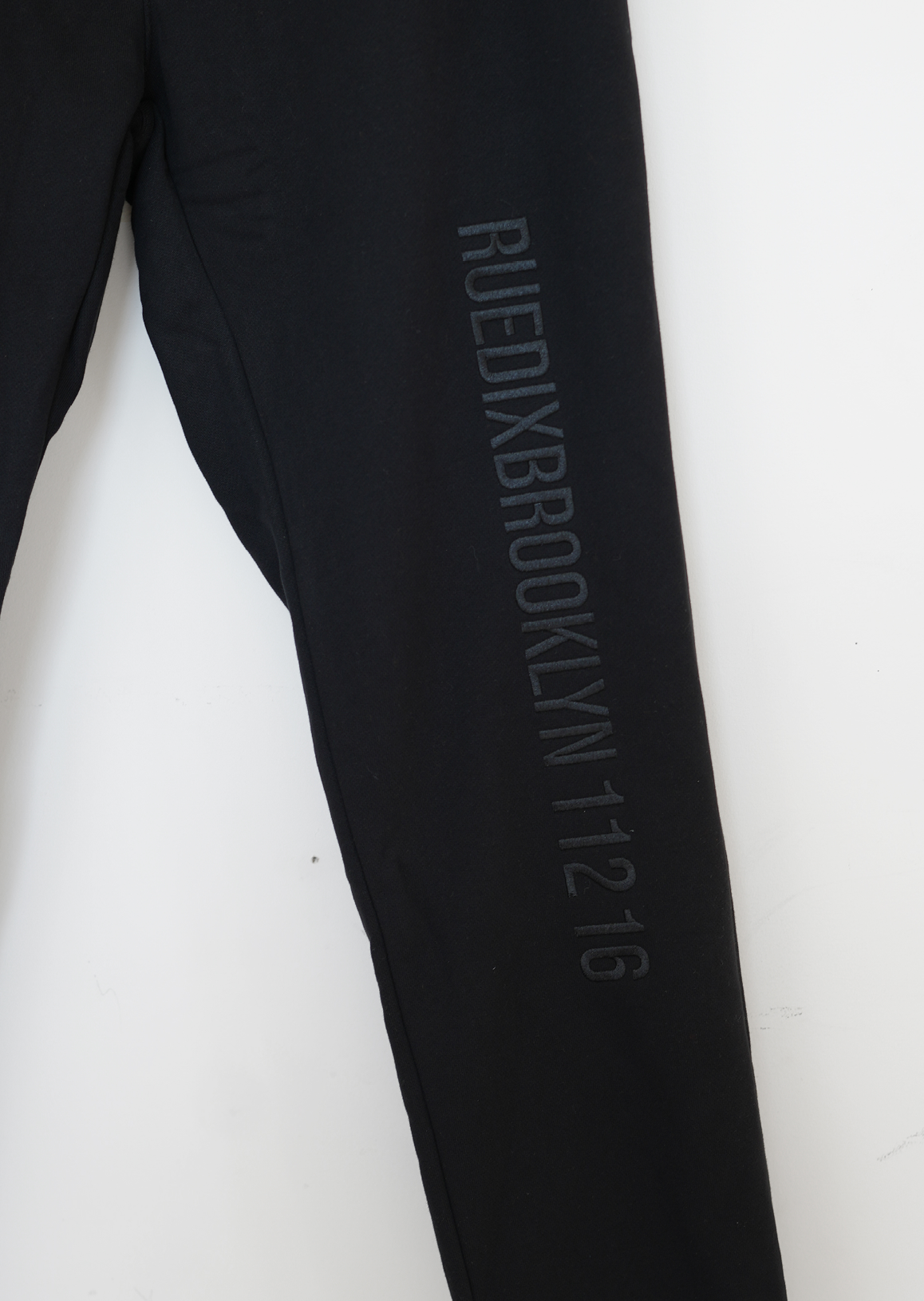 Embroidered RUEDIXBROOKLYN 11216 logo at left leg and back right upper calf