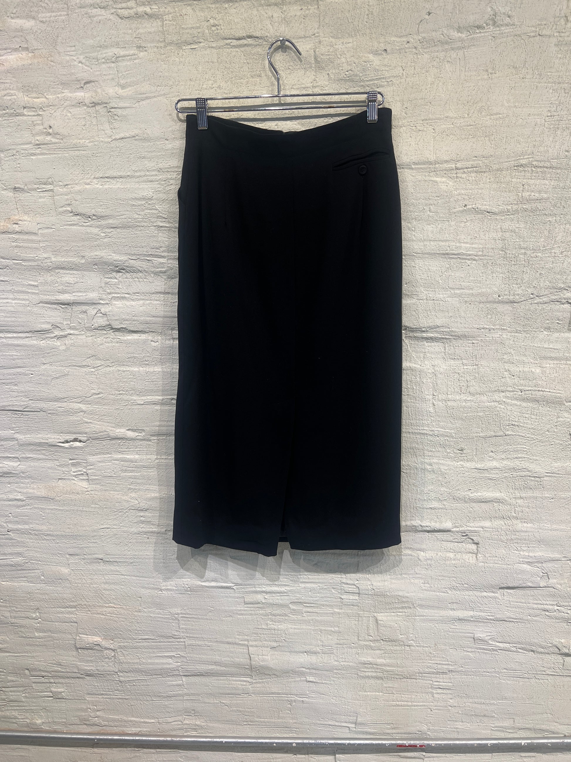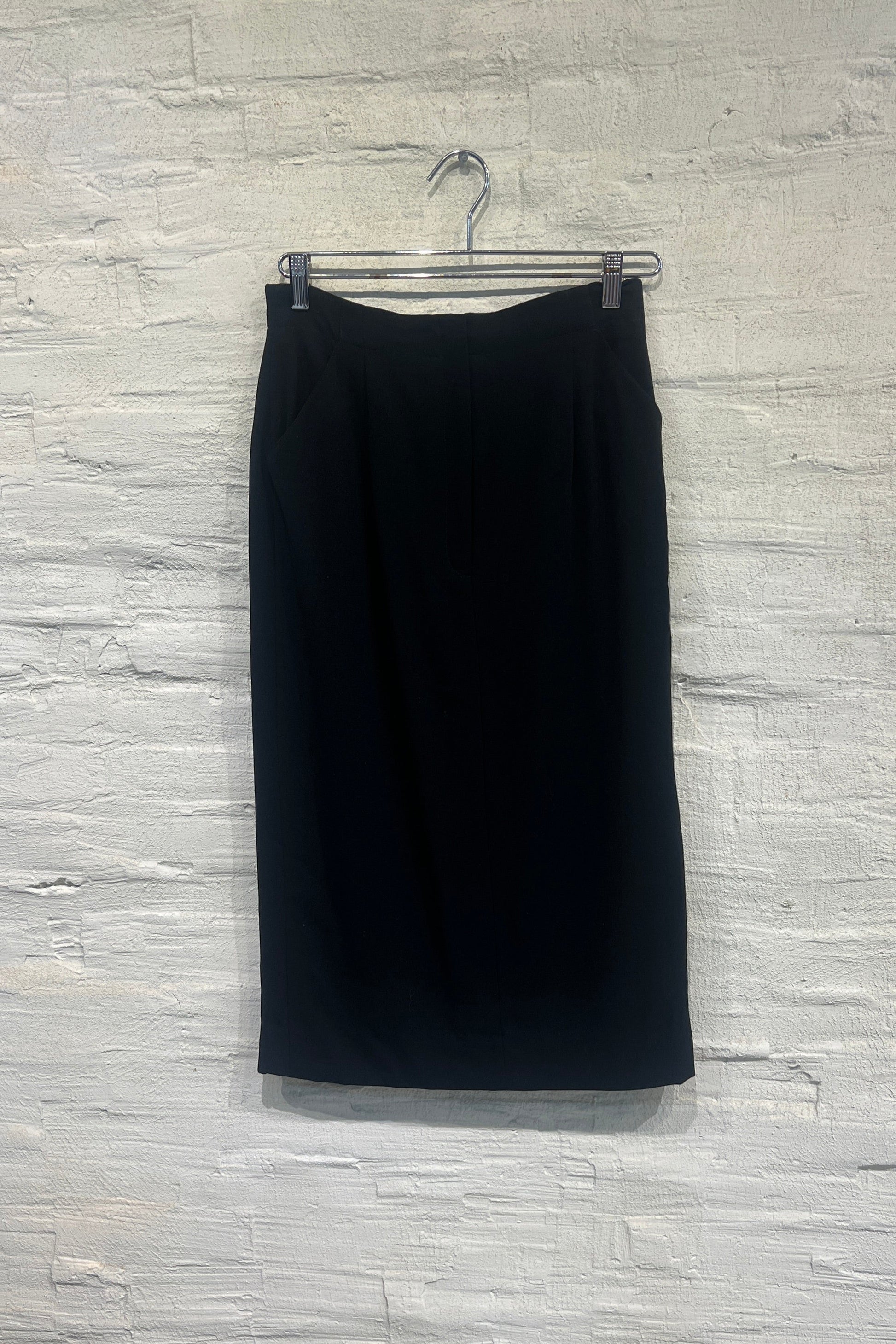 A classic suiting black pencil skirt. Slim and tailored flattering fit.