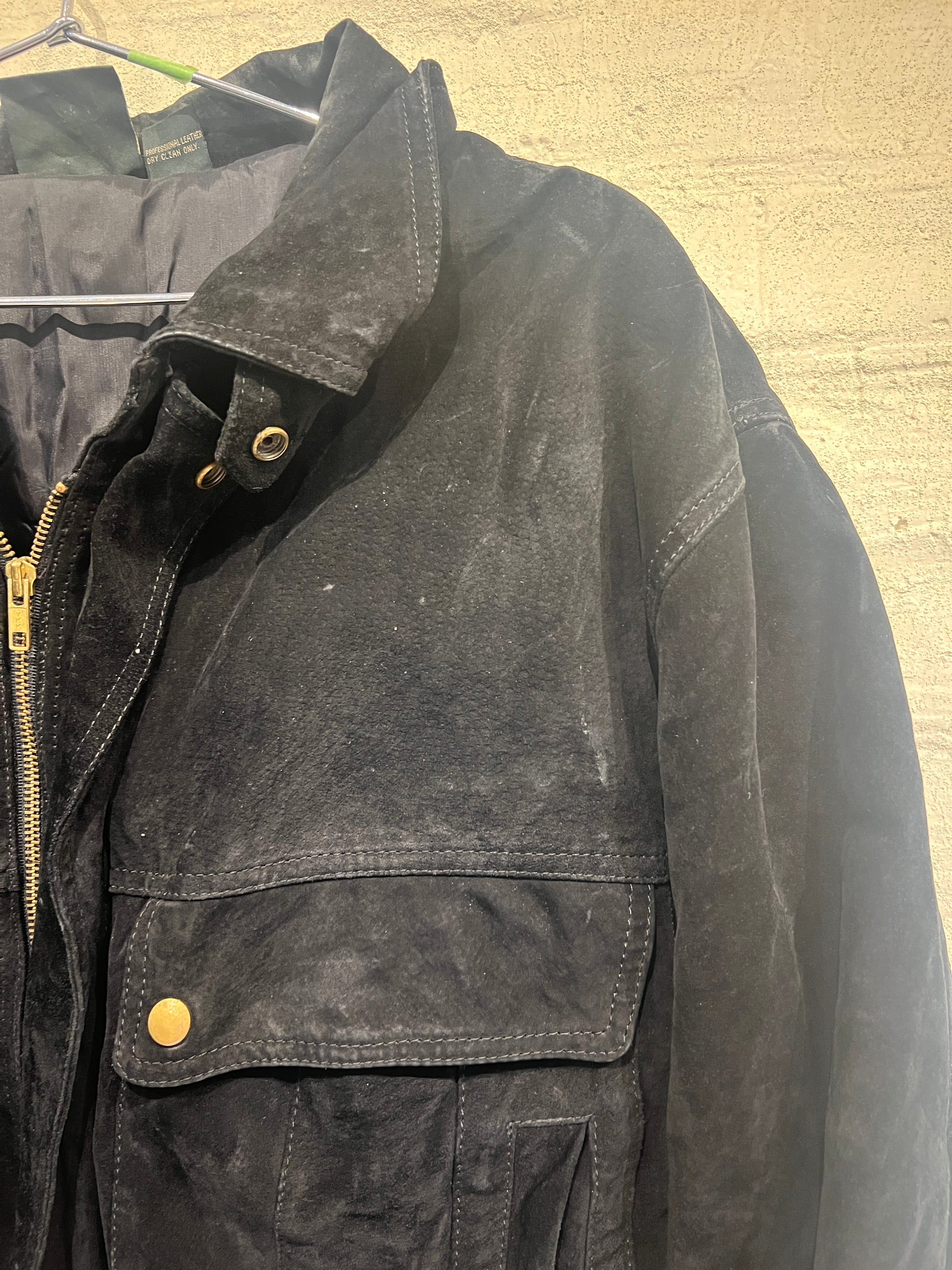 Stay stylish and warm in this vintage/used Black suede Stefano jacket.