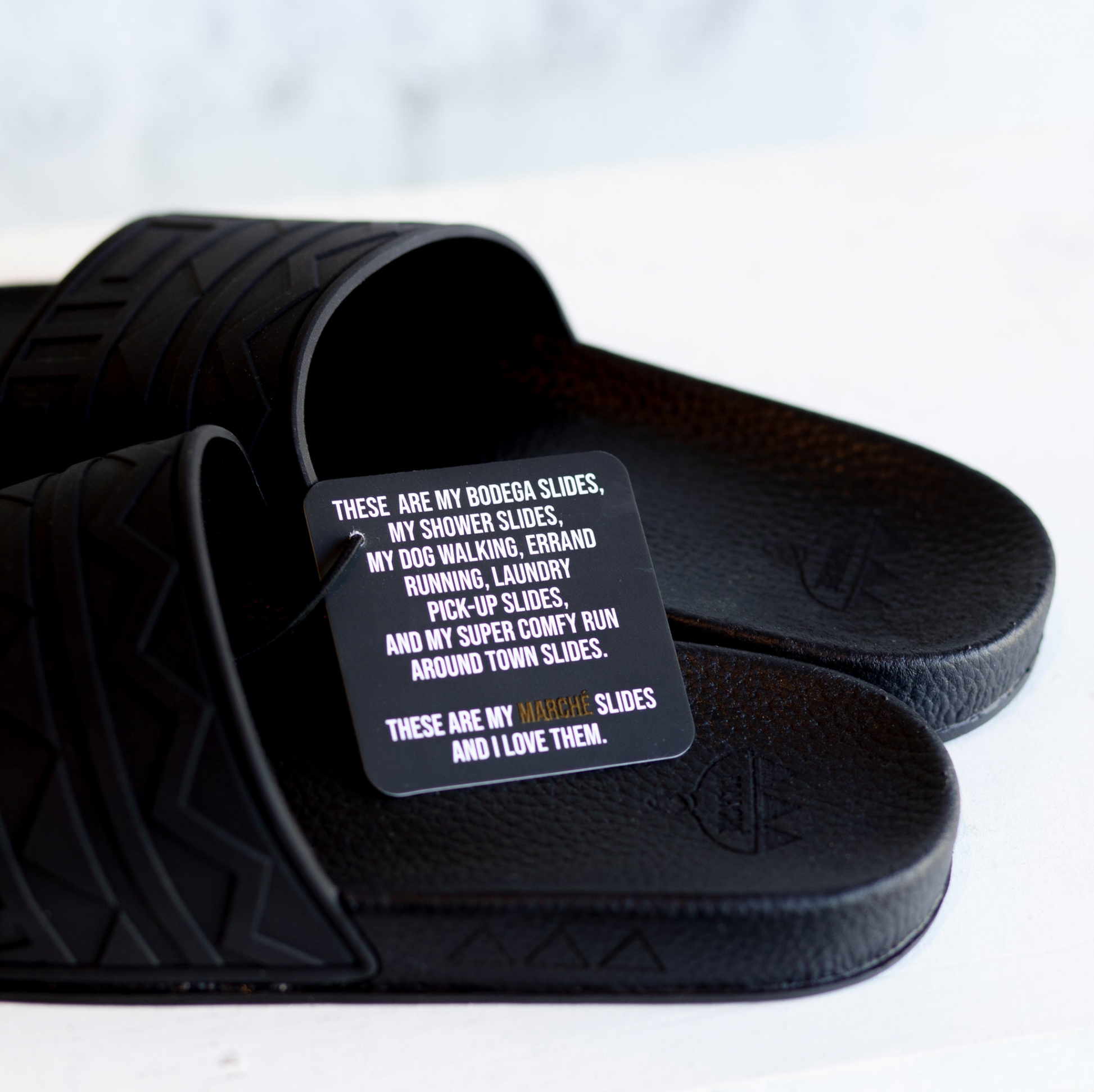 Our signature slides, featuring the classic Senegalese motif at Rue Dix. Now in two colors! Always perfect for a quick bodega run, at the pool, or to pick up some beignets from the Café ;)