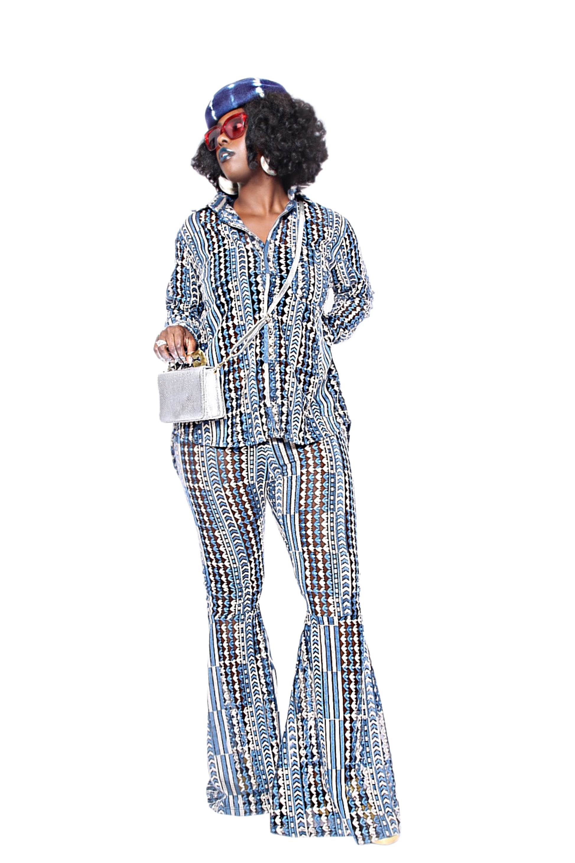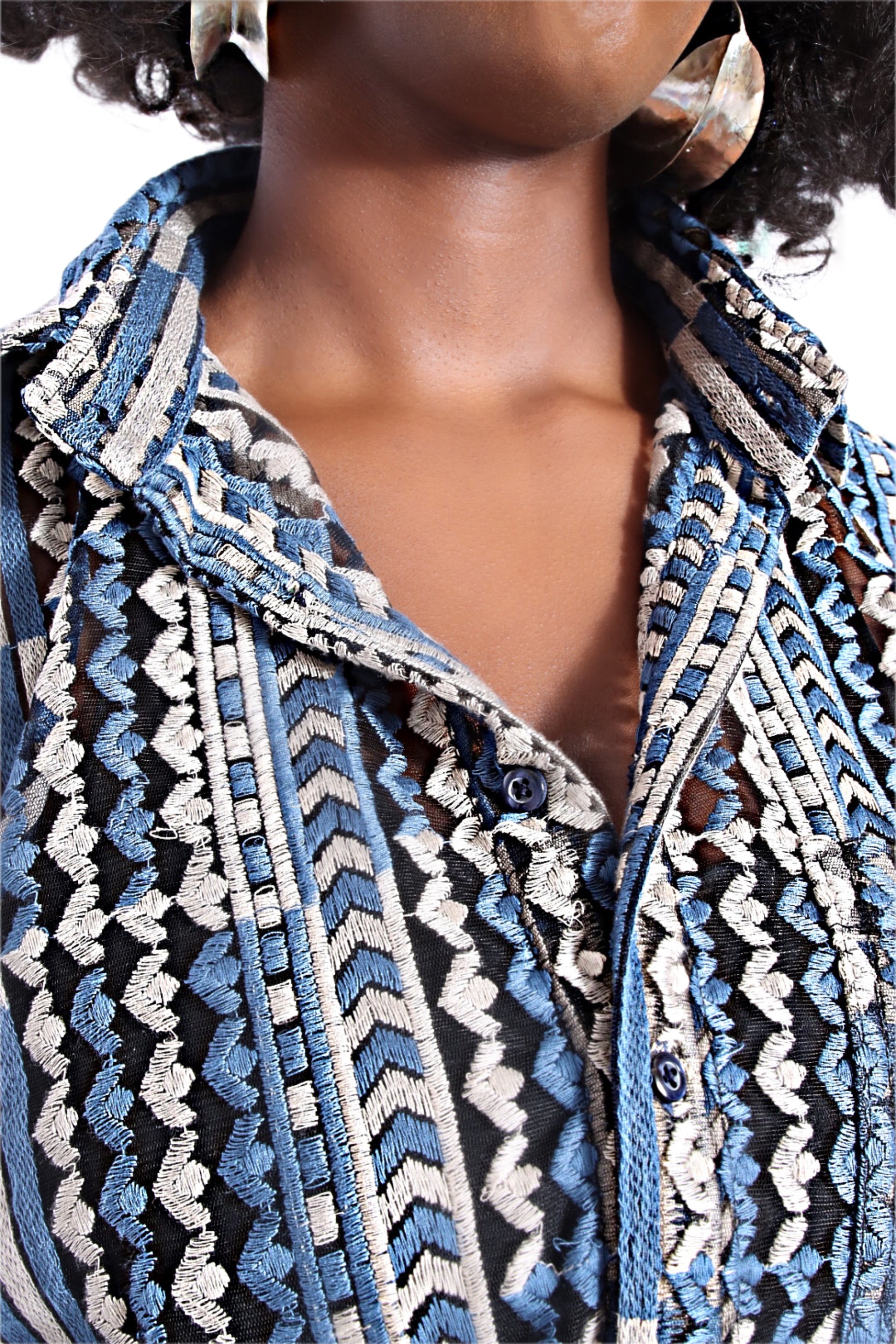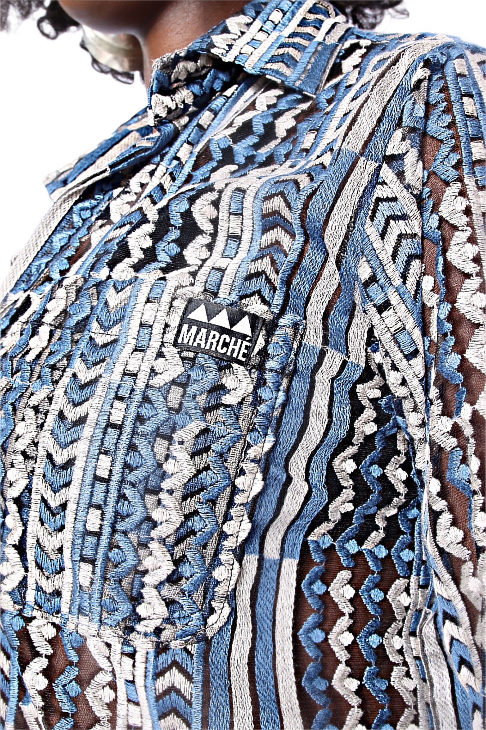Expertly tailored by Senegalese artisans, our Brooklyn shirt has a loose silhouette made from tulle and embroidered with an intricate blue and white pattern that channels international savoir-faire. Coordinate with our flared Brooklyn pants for a Jimi Hendrix moment.