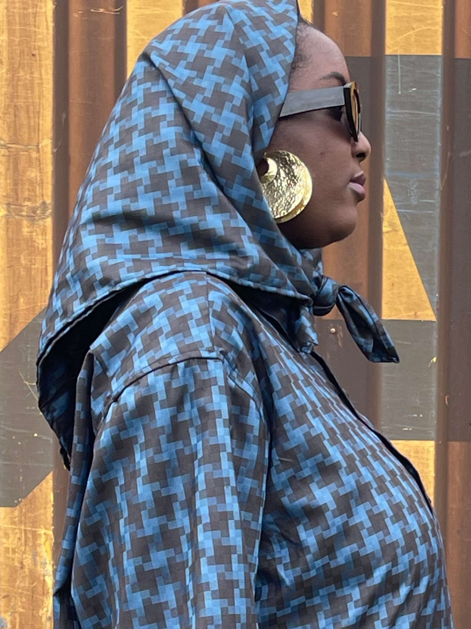 Giving incognito chic, our square Senegalese-made Fil-à-Fil scarf is a silky houndstooth plaid with an square silhouette you can wrap casually around your big hair, or stylishly layered over your coat when you can’t be bothered with the cold.