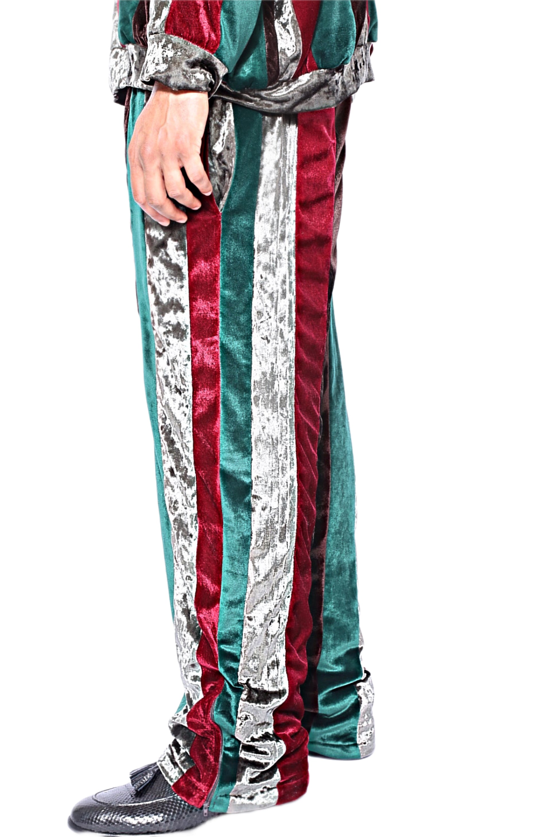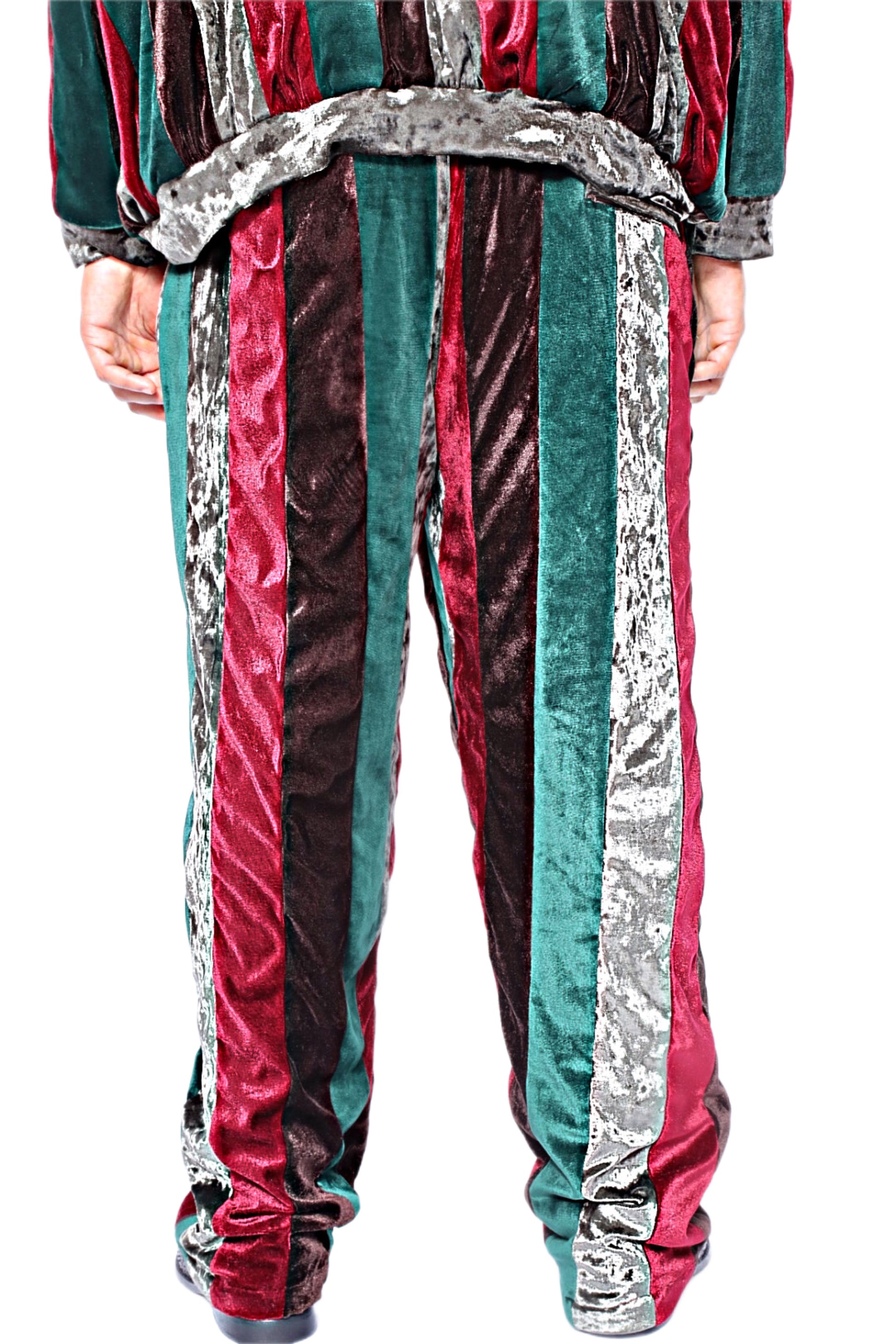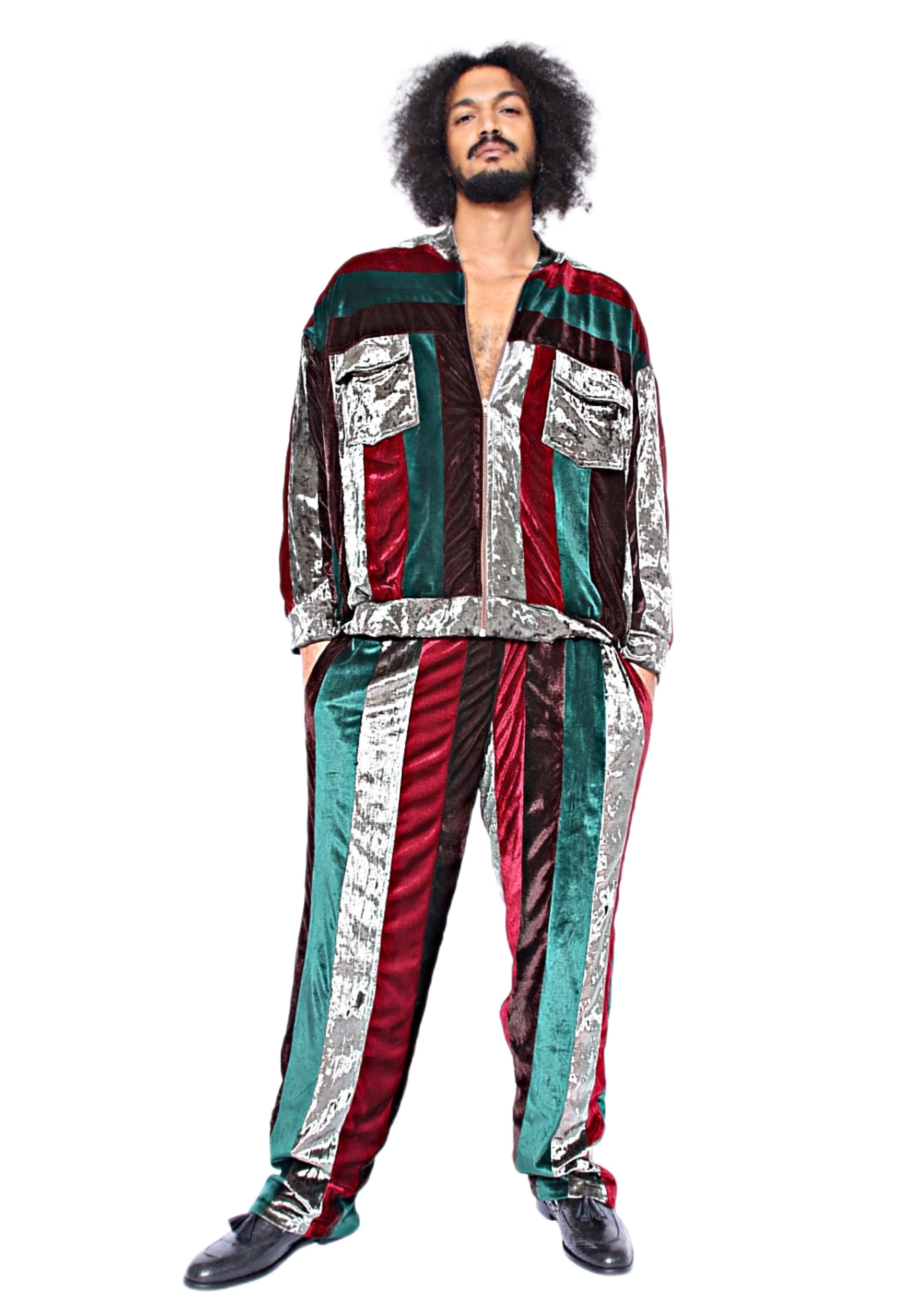 A throwback to your favorite ‘00s tracksuit, our luxurious Diallo joggers were expertly crafted in Senegal from hand-cut strips of velour and then sewn together to create this exclusive colorway. The rich jewel tones exude royalty– a nod to Africa’s regal heritage. Coordinate with our matching Diallo jacket and unzip the hems to show off your favorite footwear.