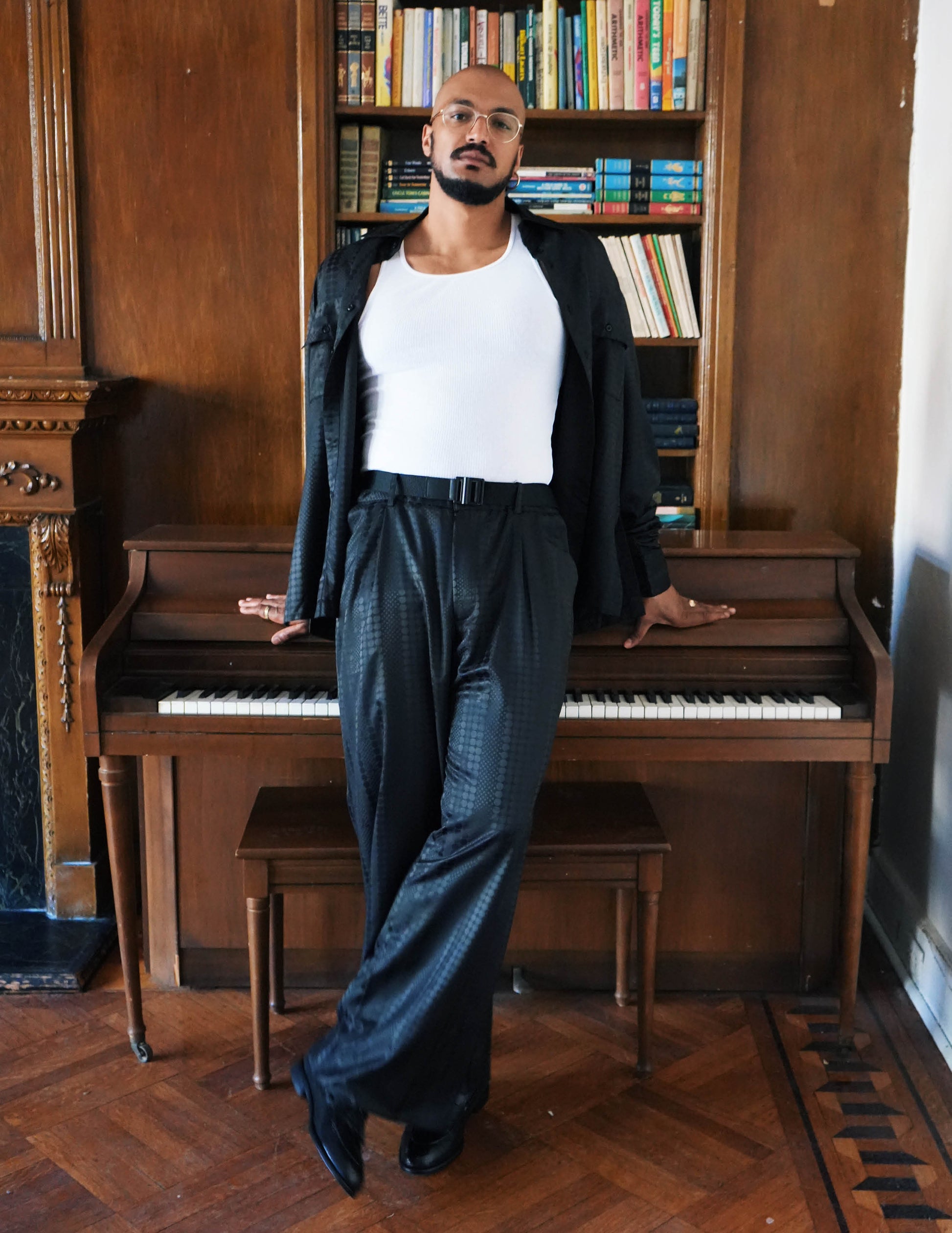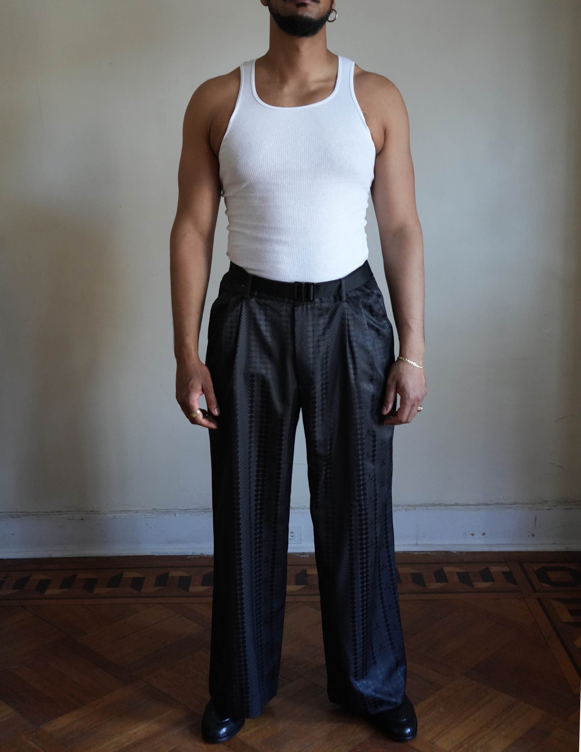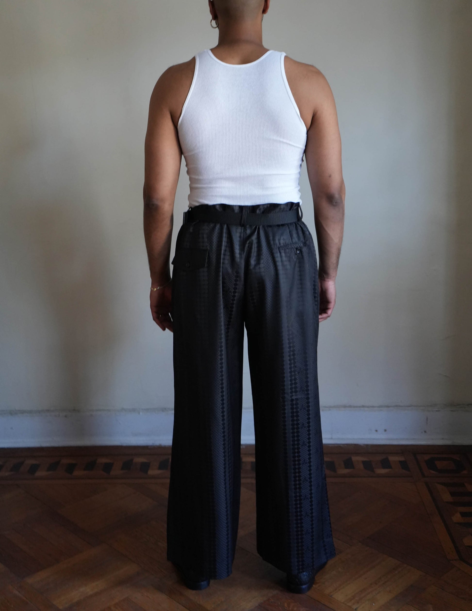 Skilled Senegalese artisans tailored our Gamble pants, a classic wide-leg pair in lustrous satin jacquard with an intricate dotted motif. Pair with our matching Gamble shirt.