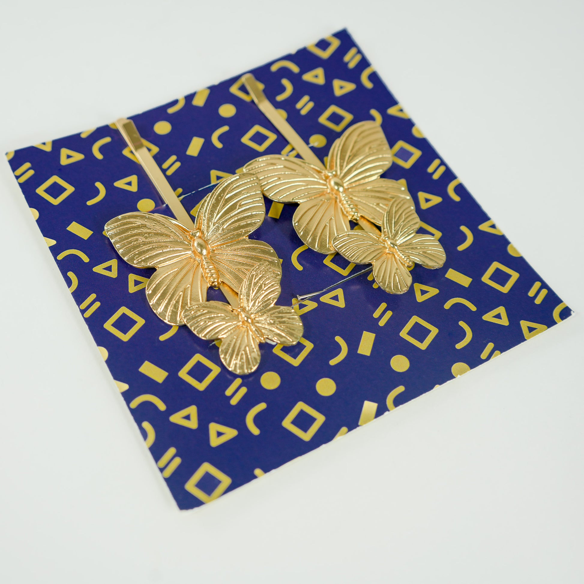 It’s the details that count. Carved in the shape of floating butterflies, these pins are here to adorn your crown with a touch of gilded glamour.