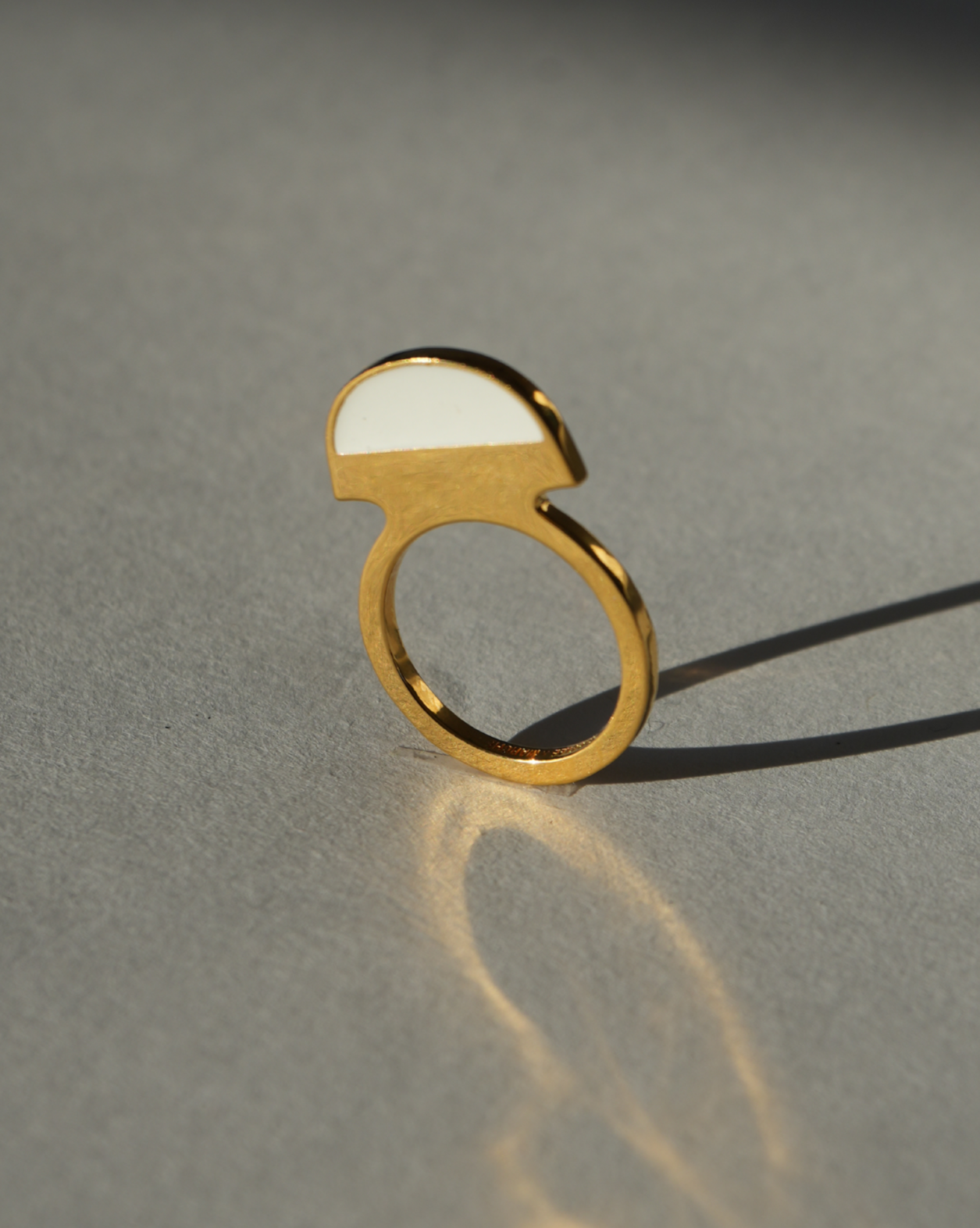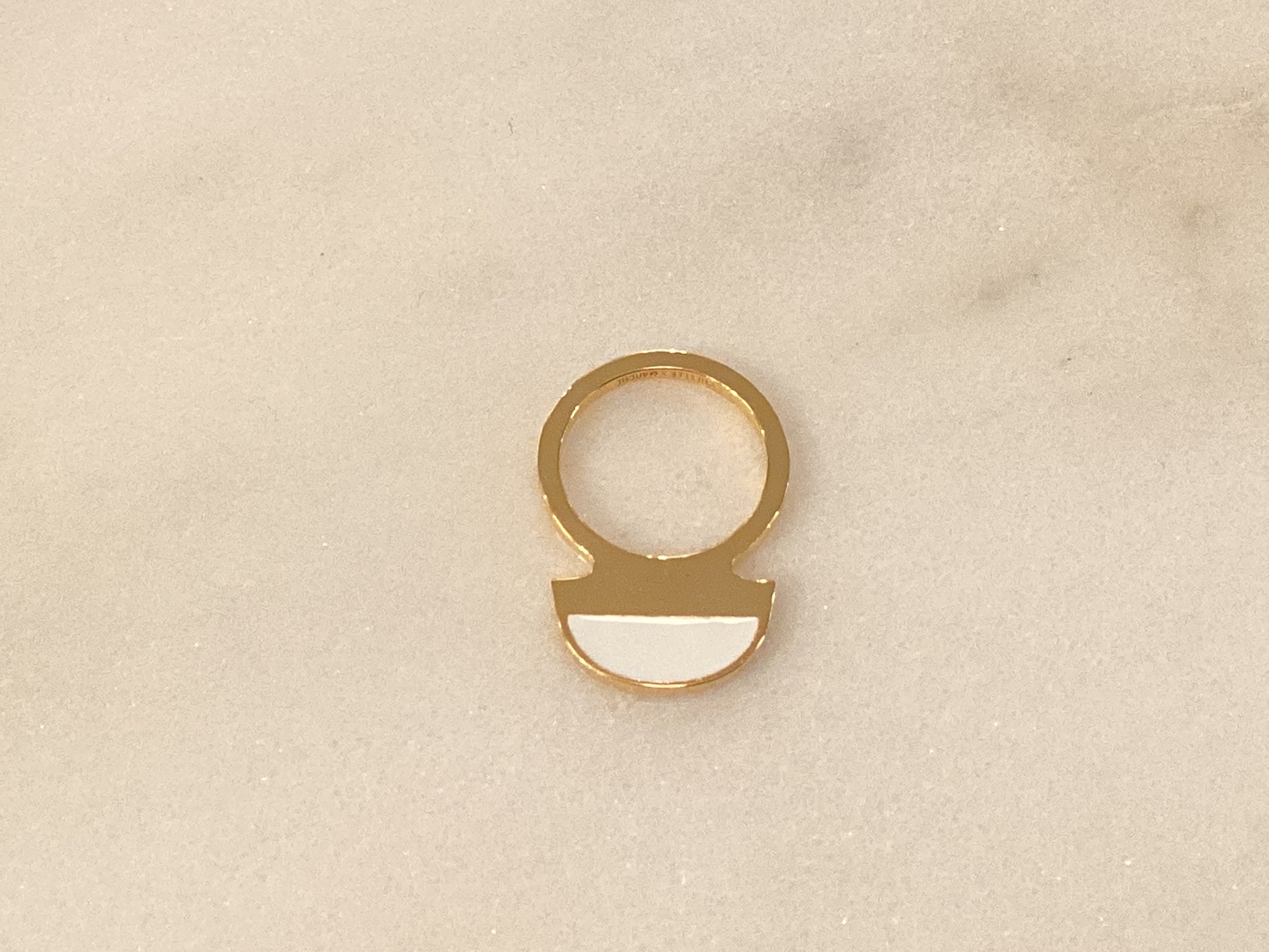 GOLD Vermeil Crescent White Enamel Ring -Diasporan Voyage