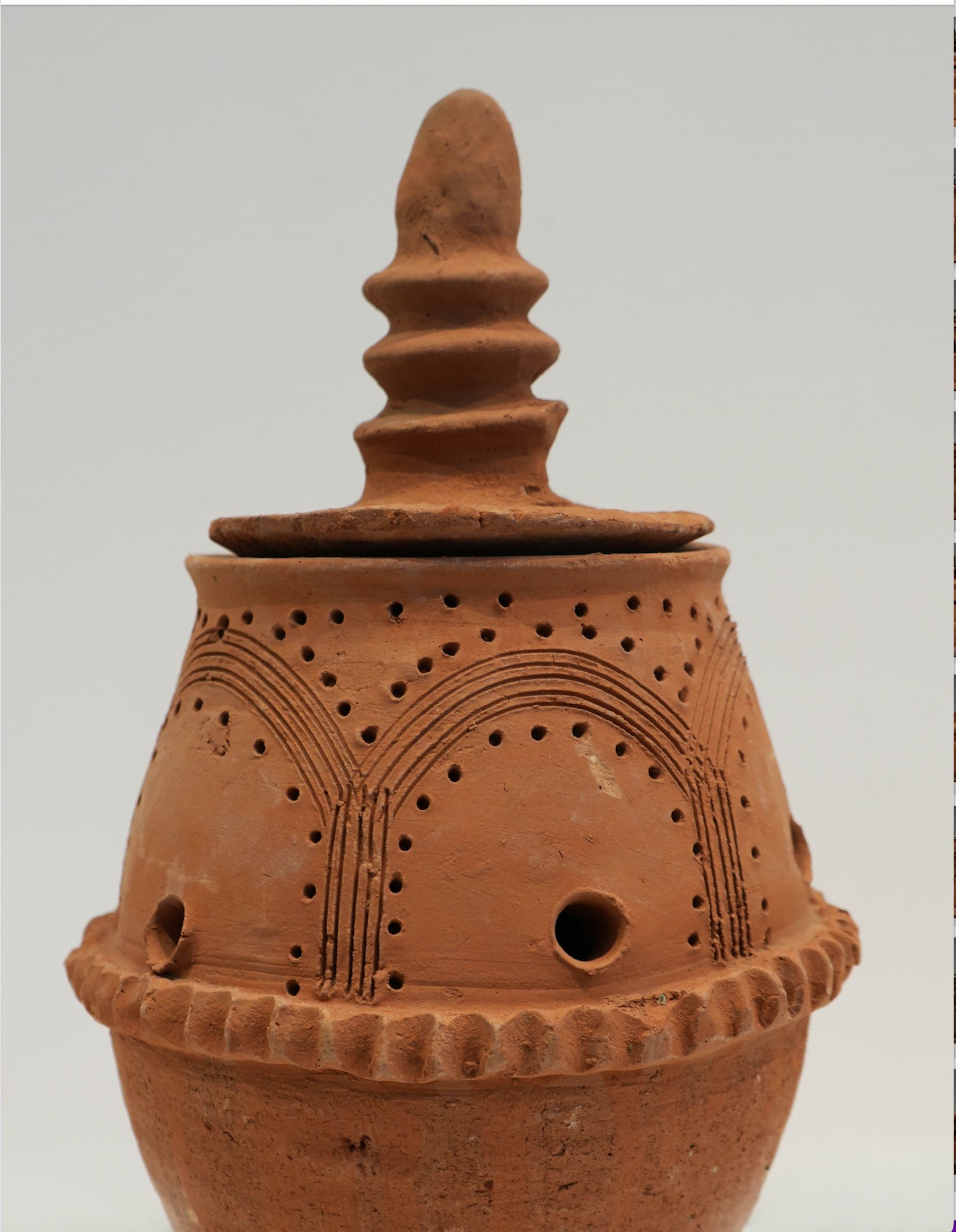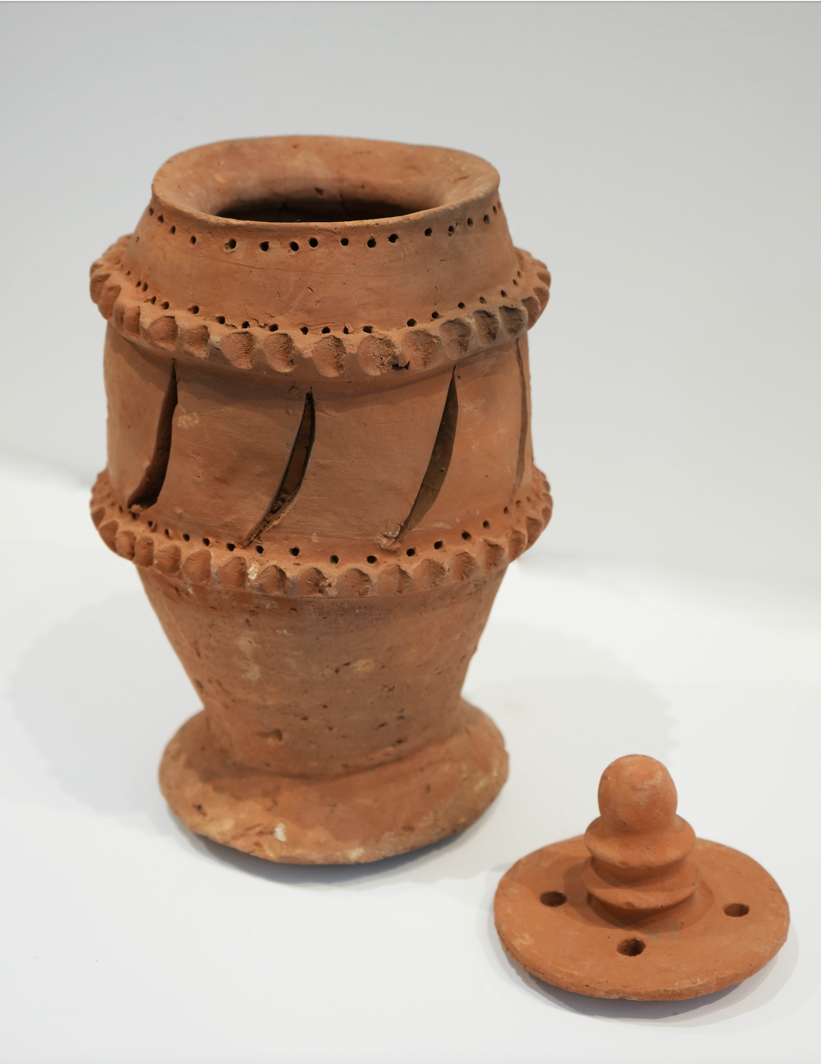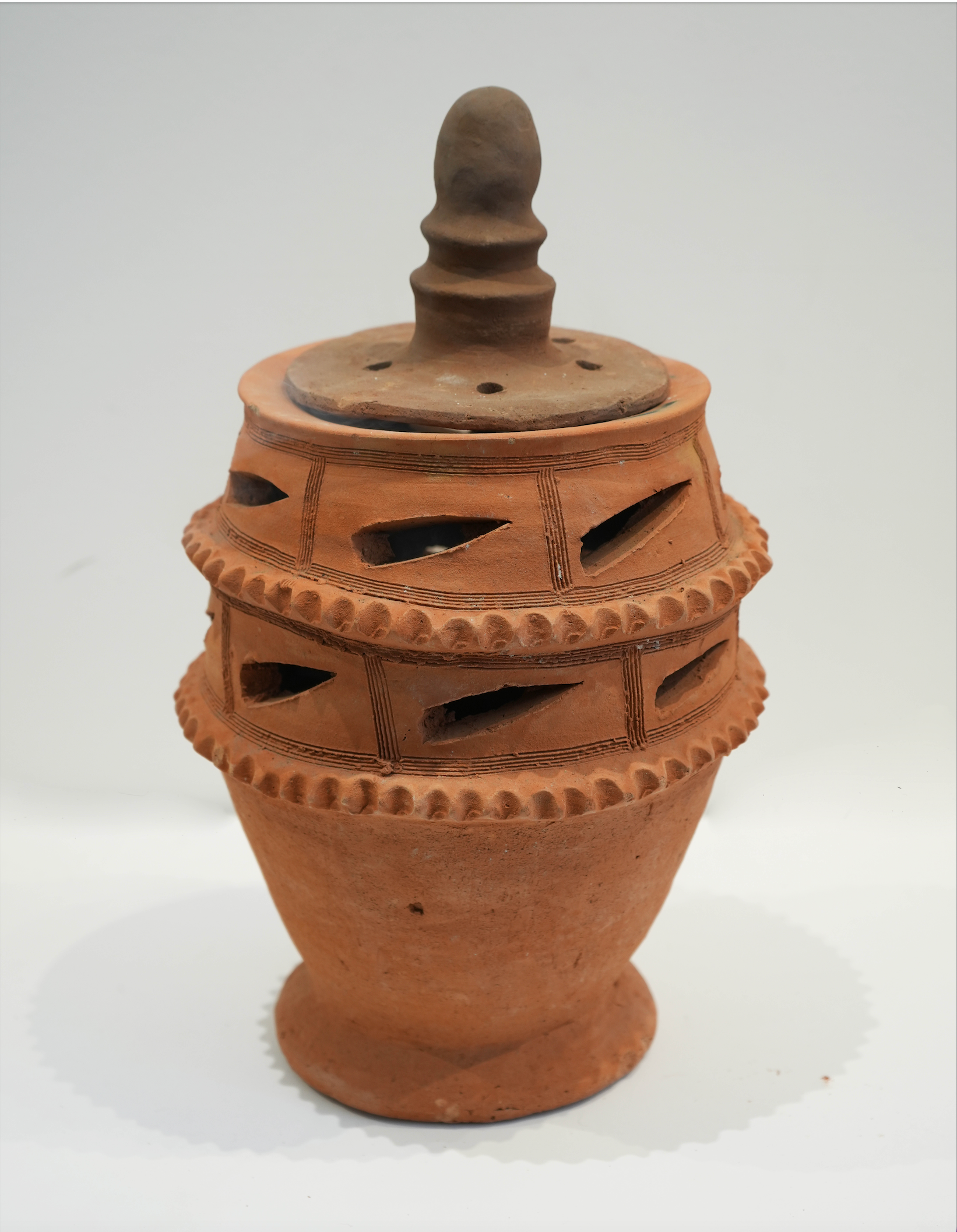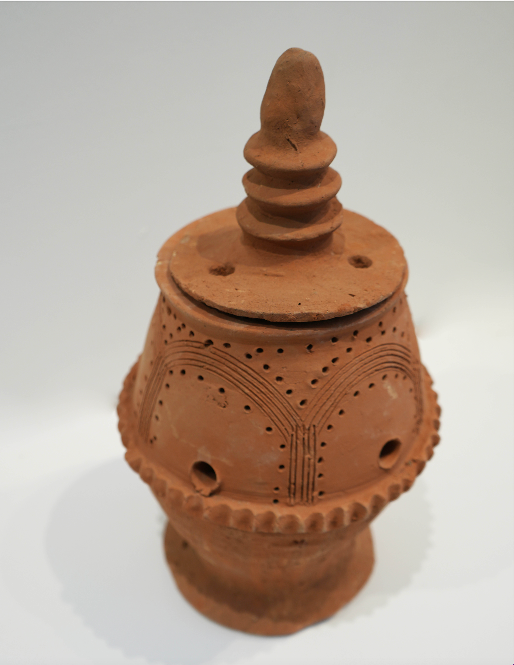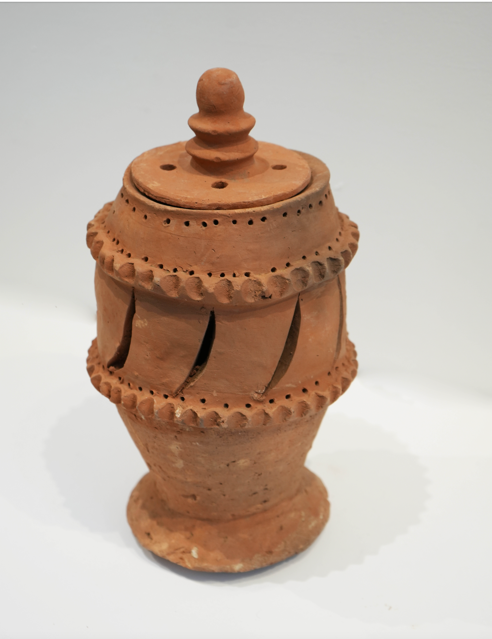 Experience the traditional style of burning incense with this handcrafted clay incense burner from Senegal. Its unique design and natural materials make it a beautiful and stylish addition to any space. Each one is individually handcrafted and may vary in size and color, making it truly one-of-a-kind. Fill your space with natural scents and add an artisanal touch to your home decor.