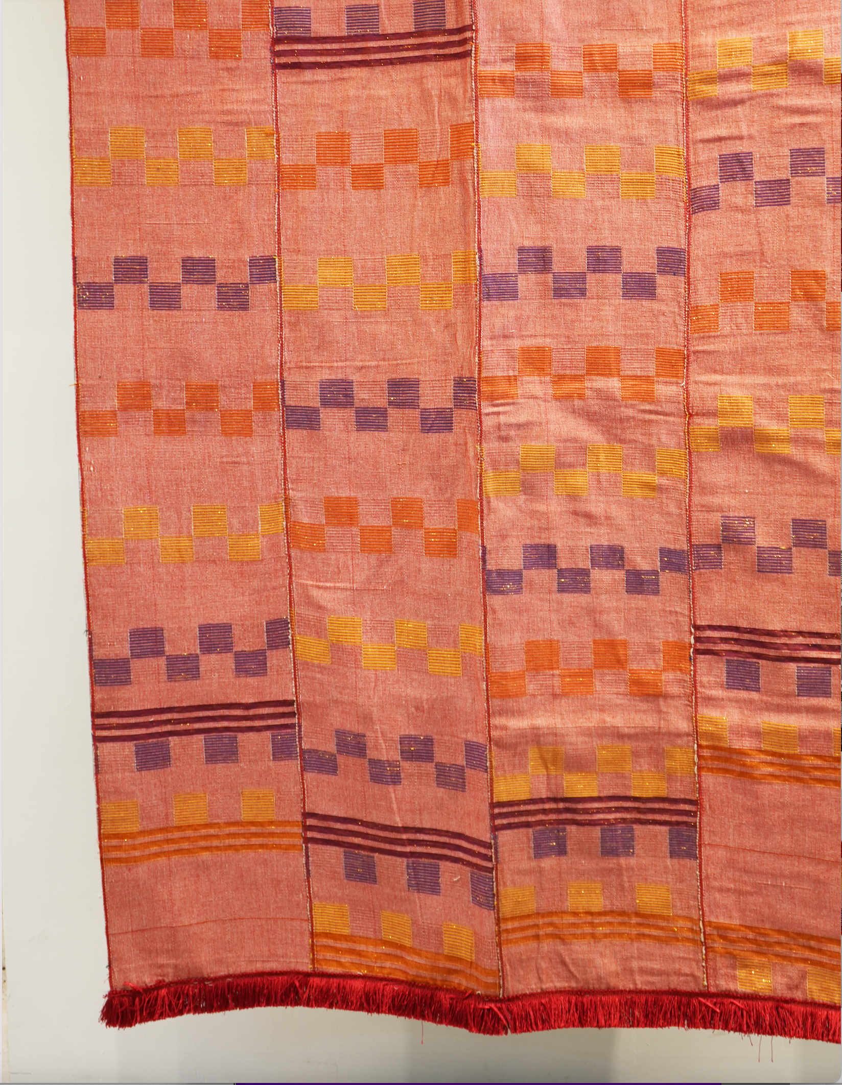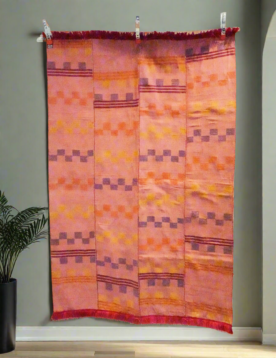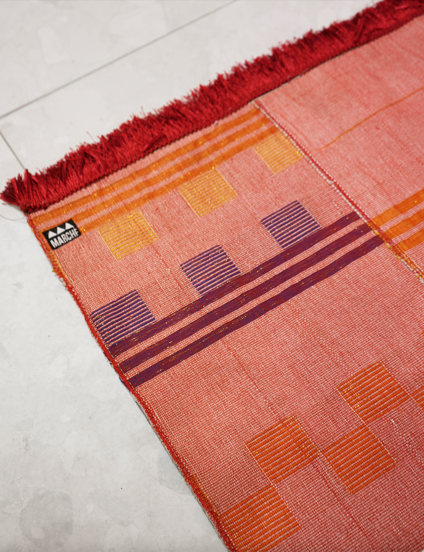 This large handwoven rug from Senegal, measuring 70 x 42 inches, is a unique and beautifully crafted piece. With a non-slip rubber backing for added comfort and intricate hand weaving, it brings a touch of sophistication to any space.