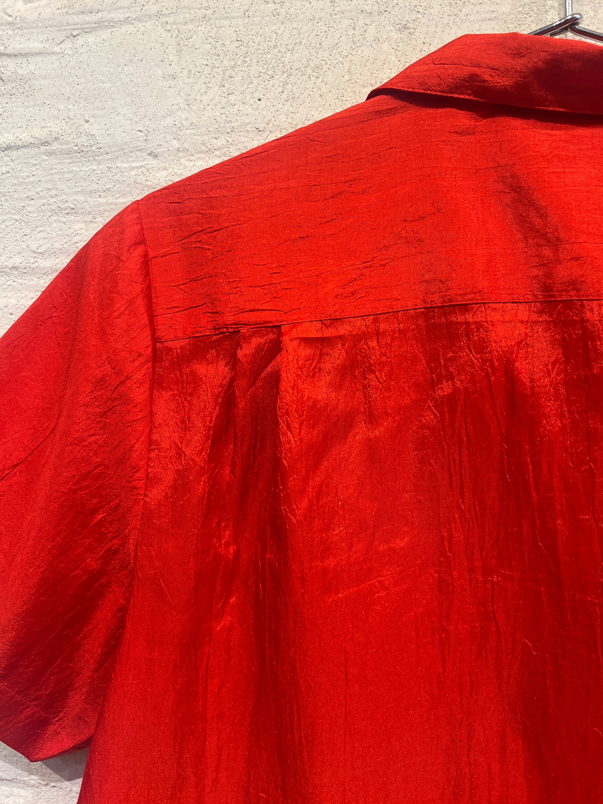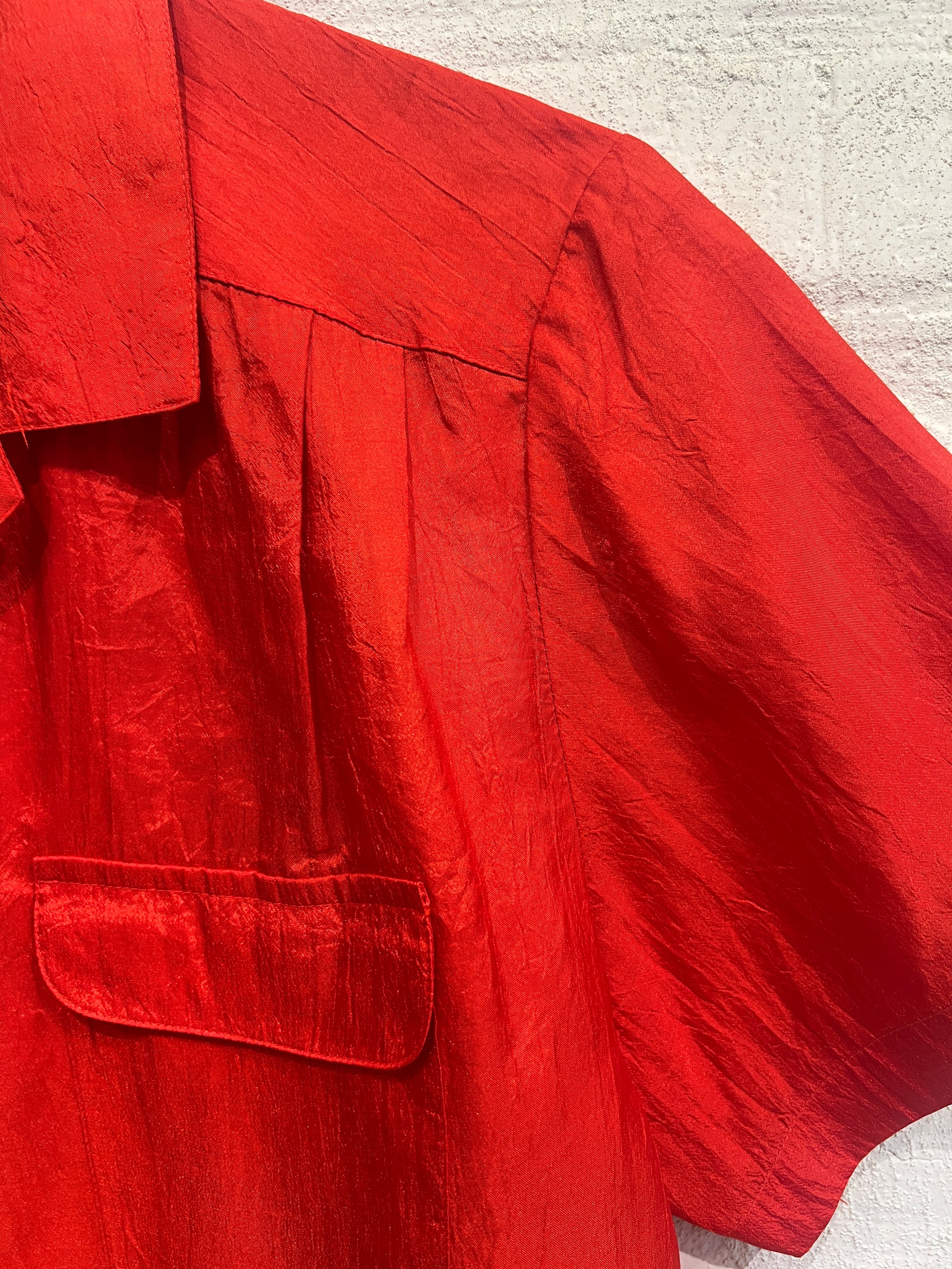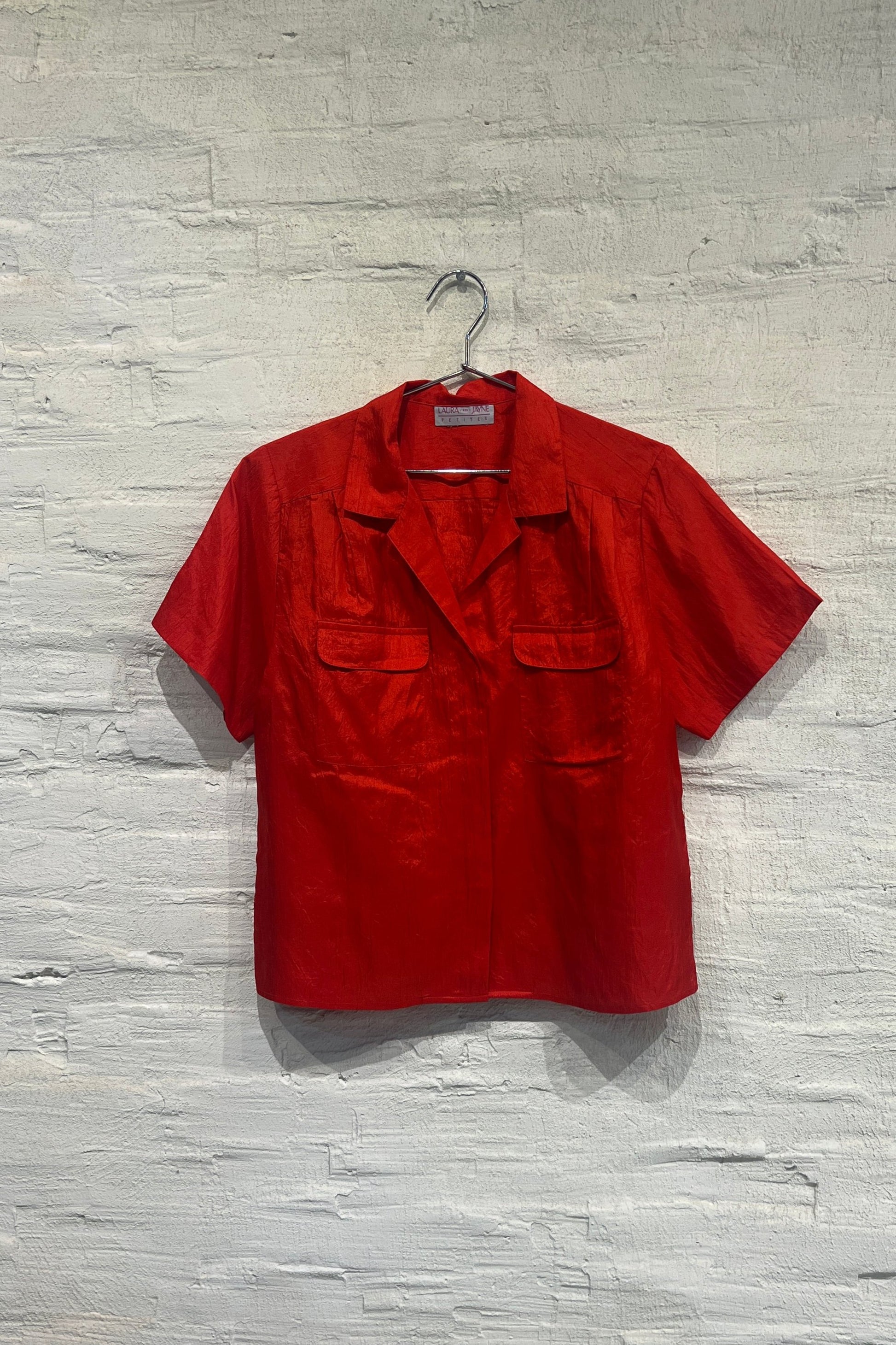 Classic Red Short Sleeve Cropped Blouse - Vintage/Used