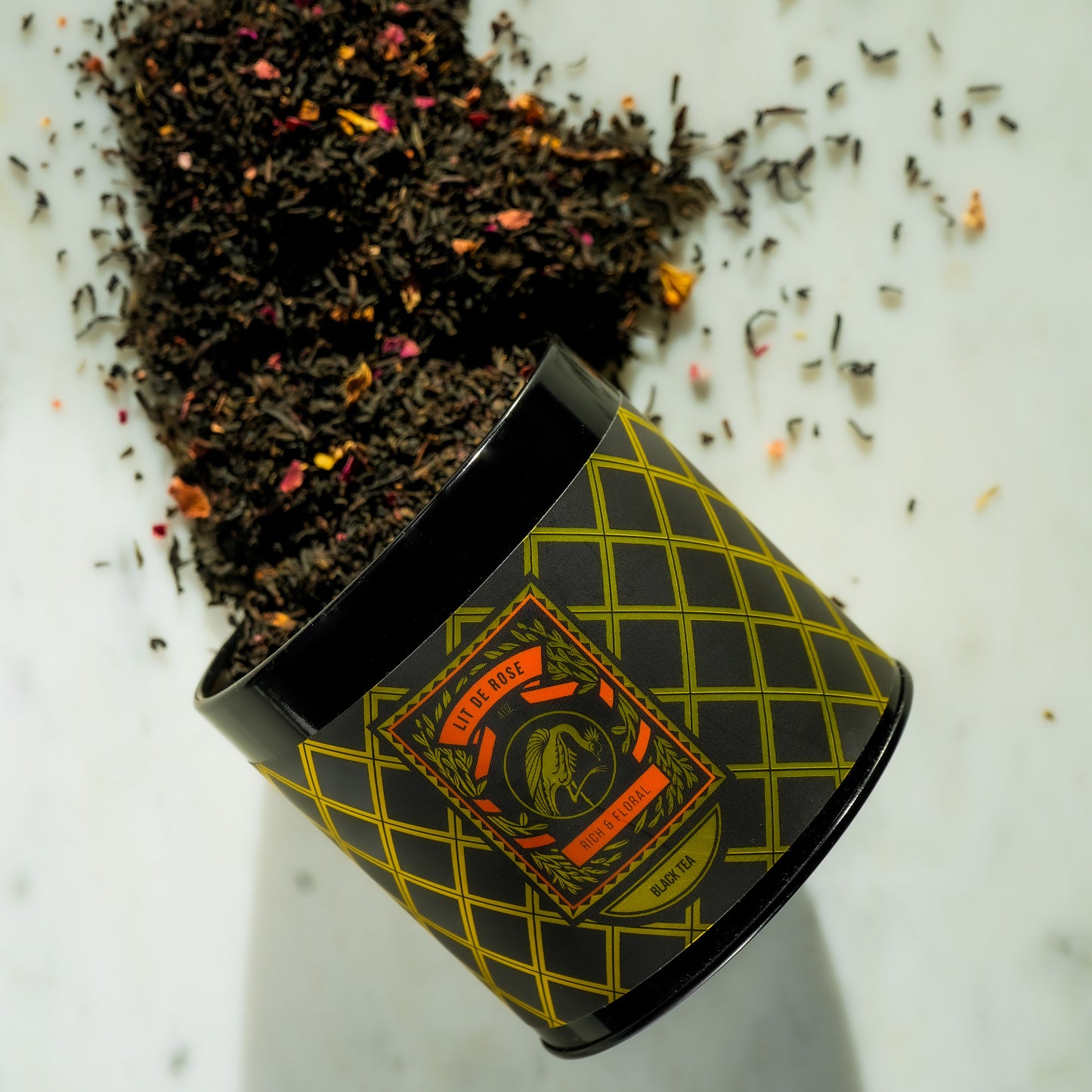 Bold black tea blended with rose petals for a smooth aromatic flavour. Makes for a rich cup of tea with floral overtones.