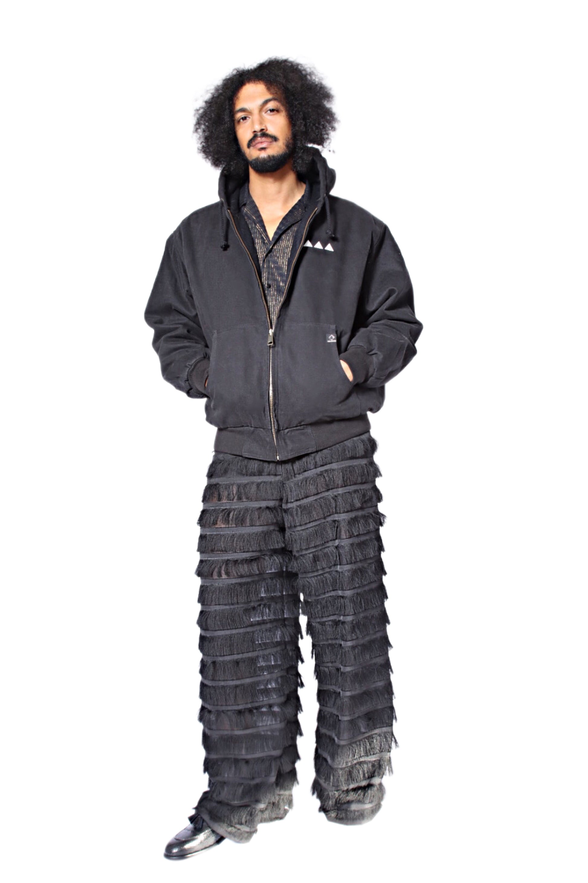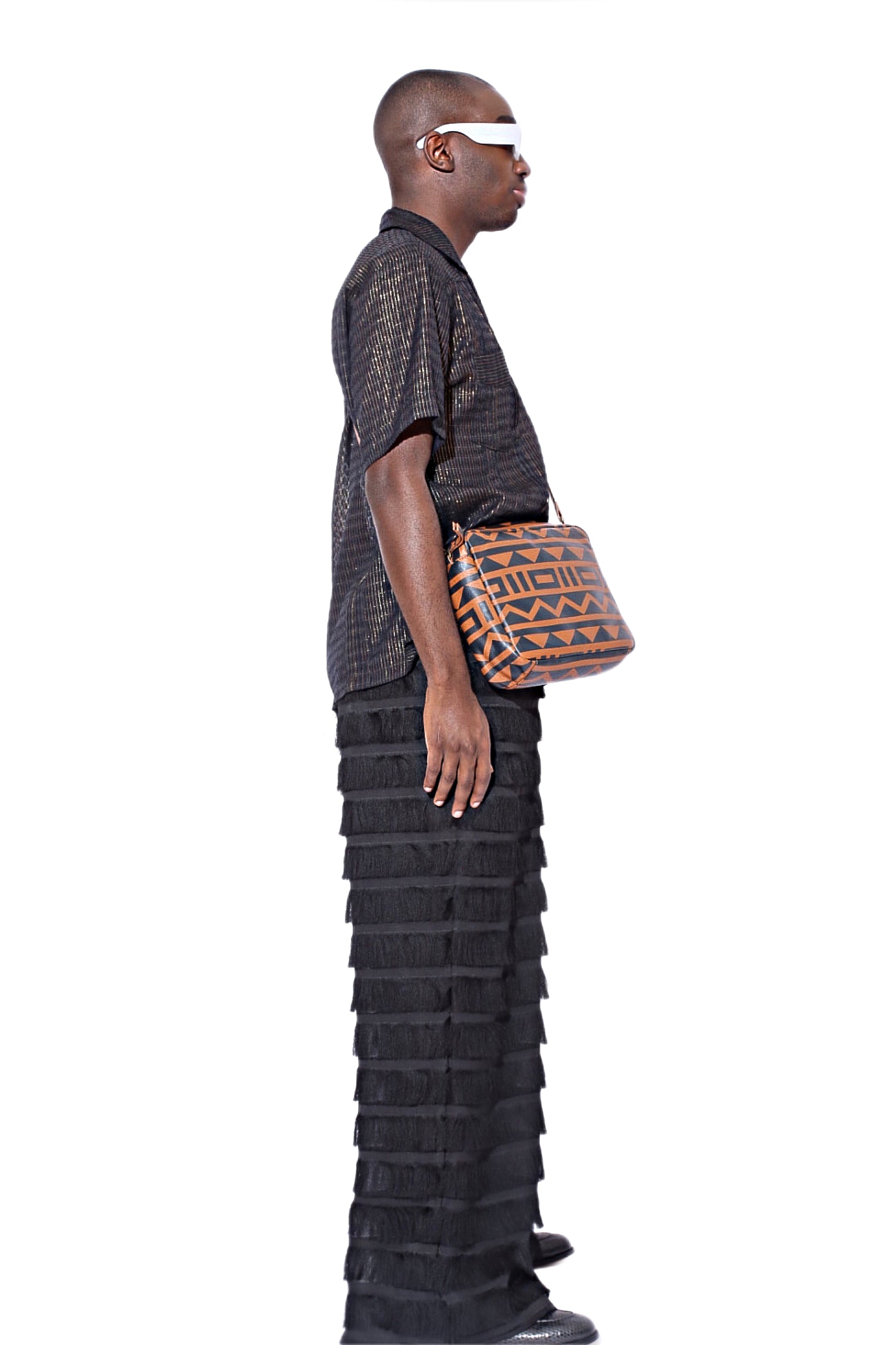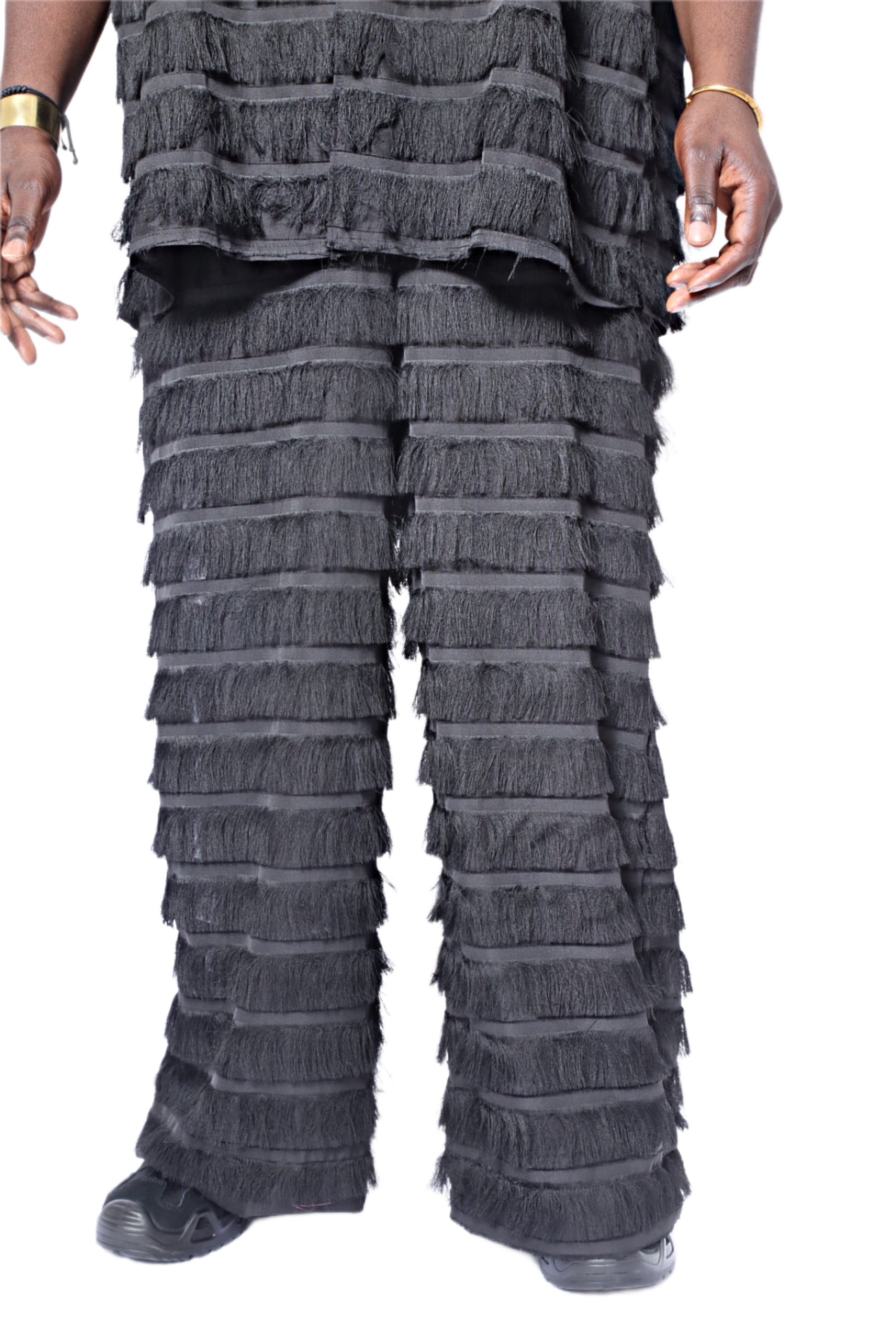 Our Moruf pants have a fluid, wide-leg silhouette cut from organza and illuminated with tiered fringe– the result of the skilled eye of Senegalese artisans. Pair with our matching Moruf shirt for fierce coordination.