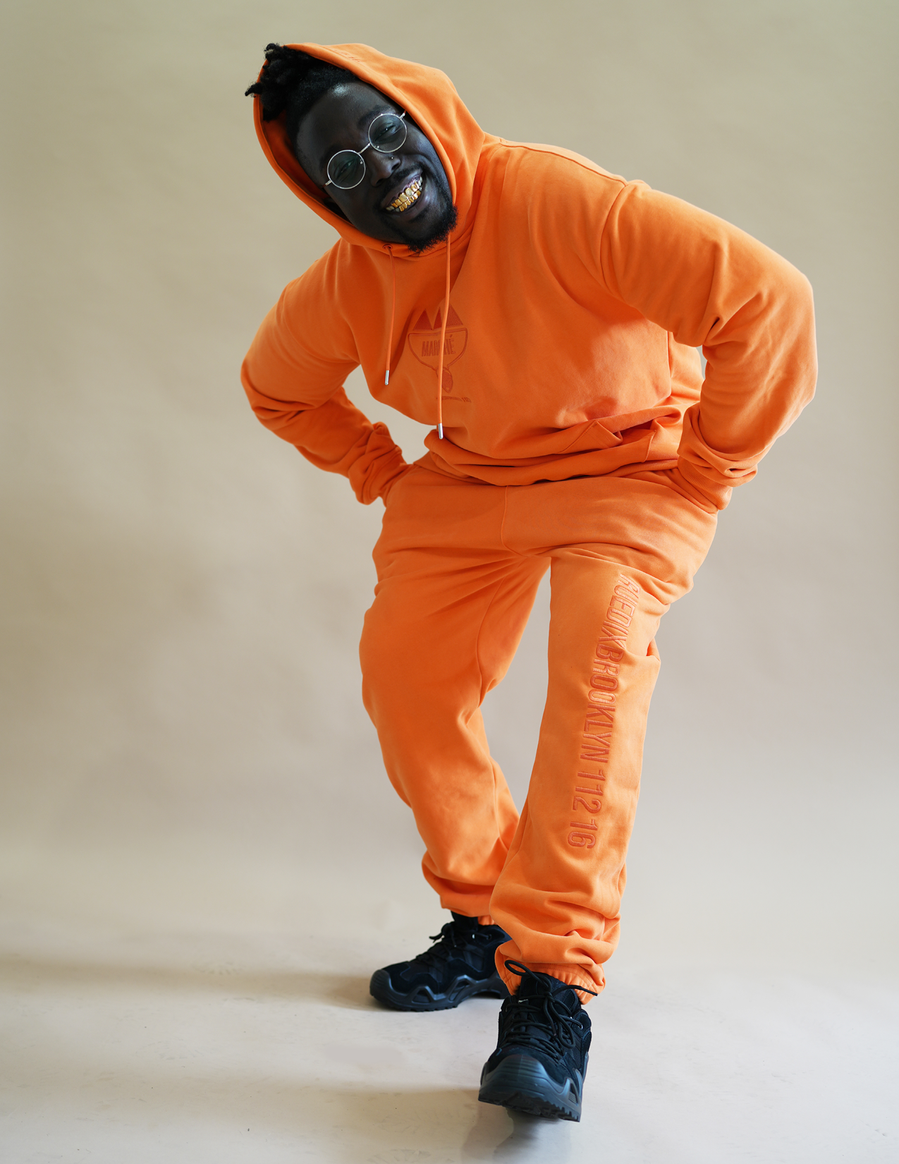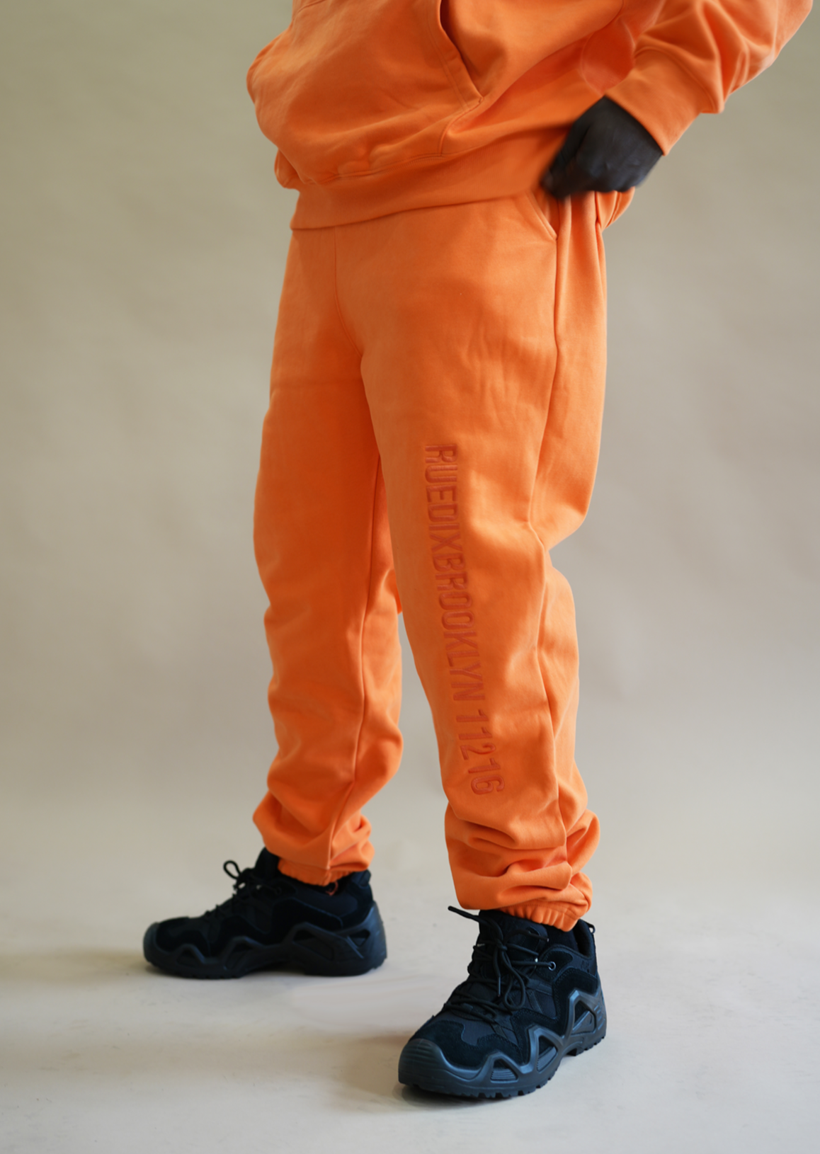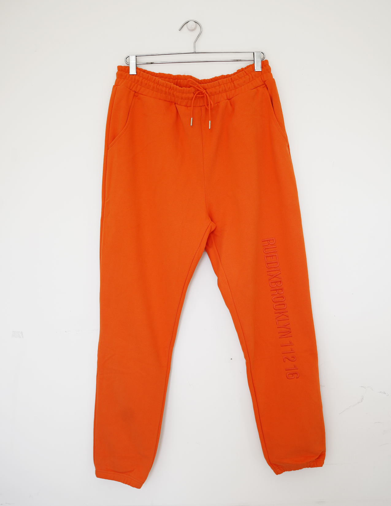 Embroidered RUEDIXBROOKLYN 11216 logo at left leg and back right upper calf