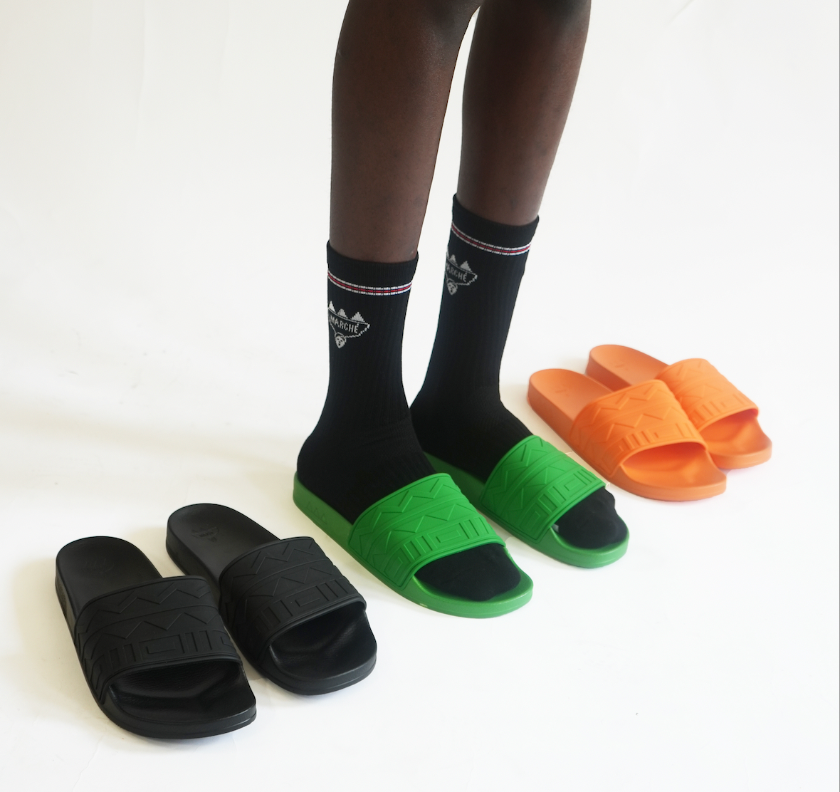 Our signature slides, featuring the classic Senegalese motif at Rue Dix. Now in two colors! Always perfect for a quick bodega run, at the pool, or to pick up some beignets from the Café ;)