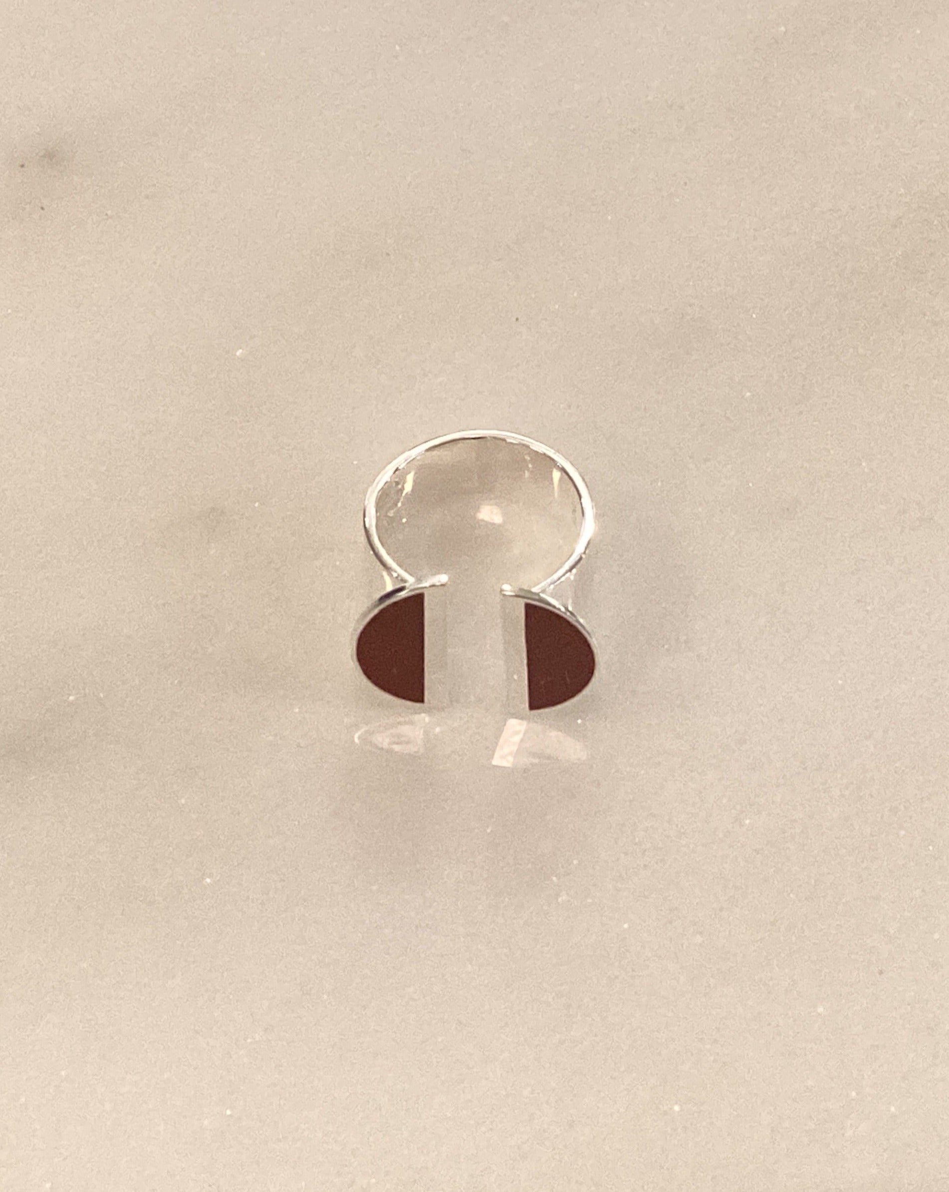 Sterling Silver Split Top Crescent Carnelian Enamel Ring - Diasporan Voyage