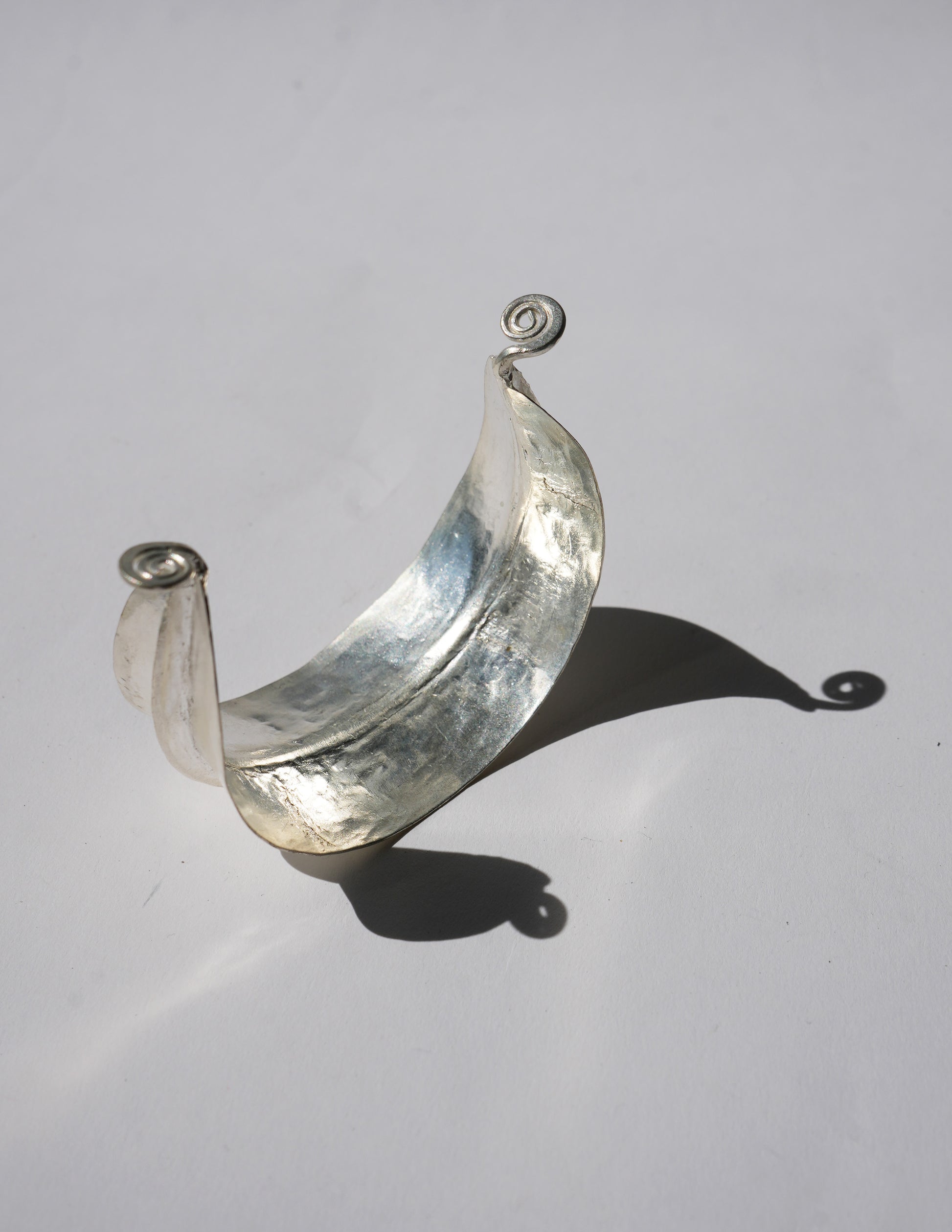 Made from silver-plated brass, this Fulani cuff is designed by L'Artisane hand-sculpted by practiced Senegalese artisans into an artfully curved silhouette for a regal daily signature.