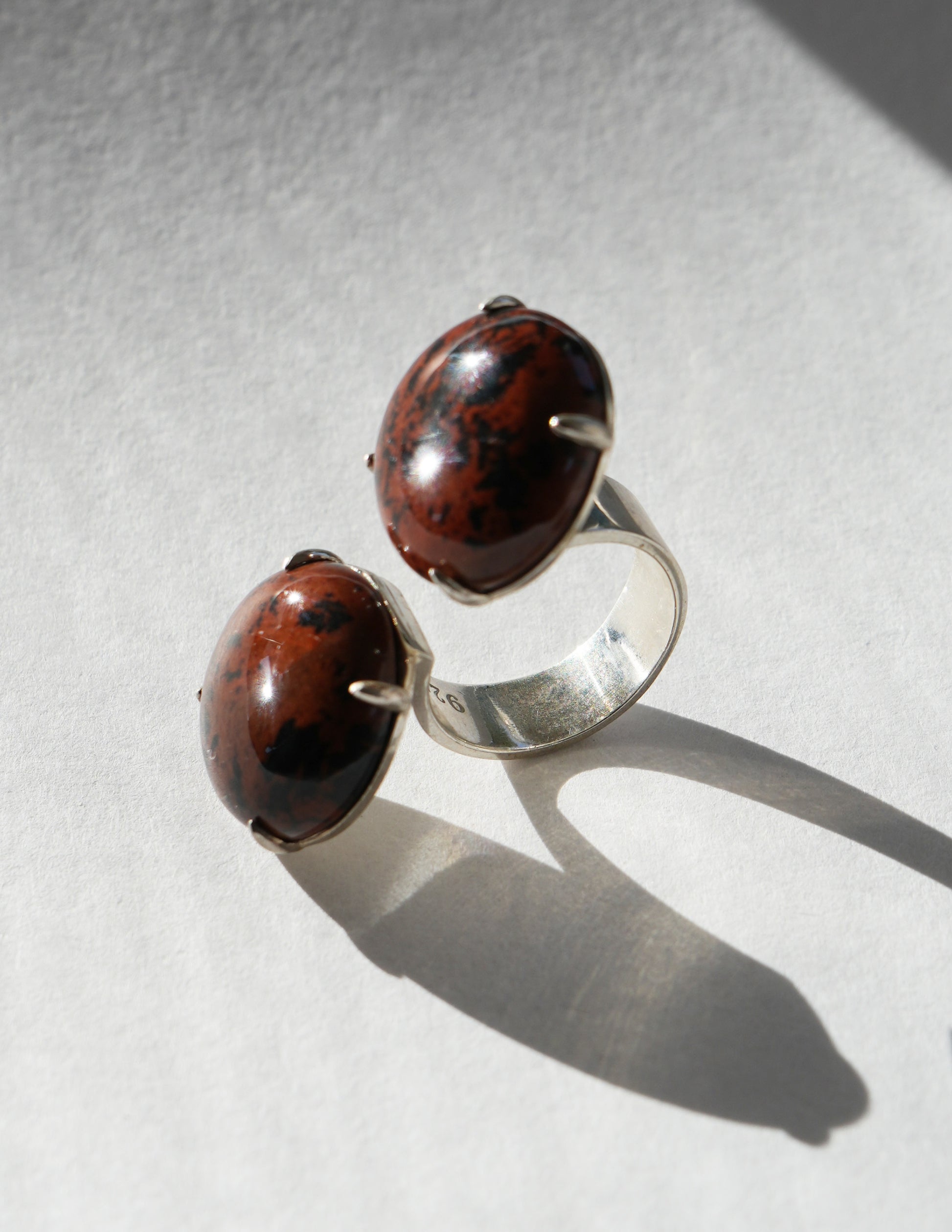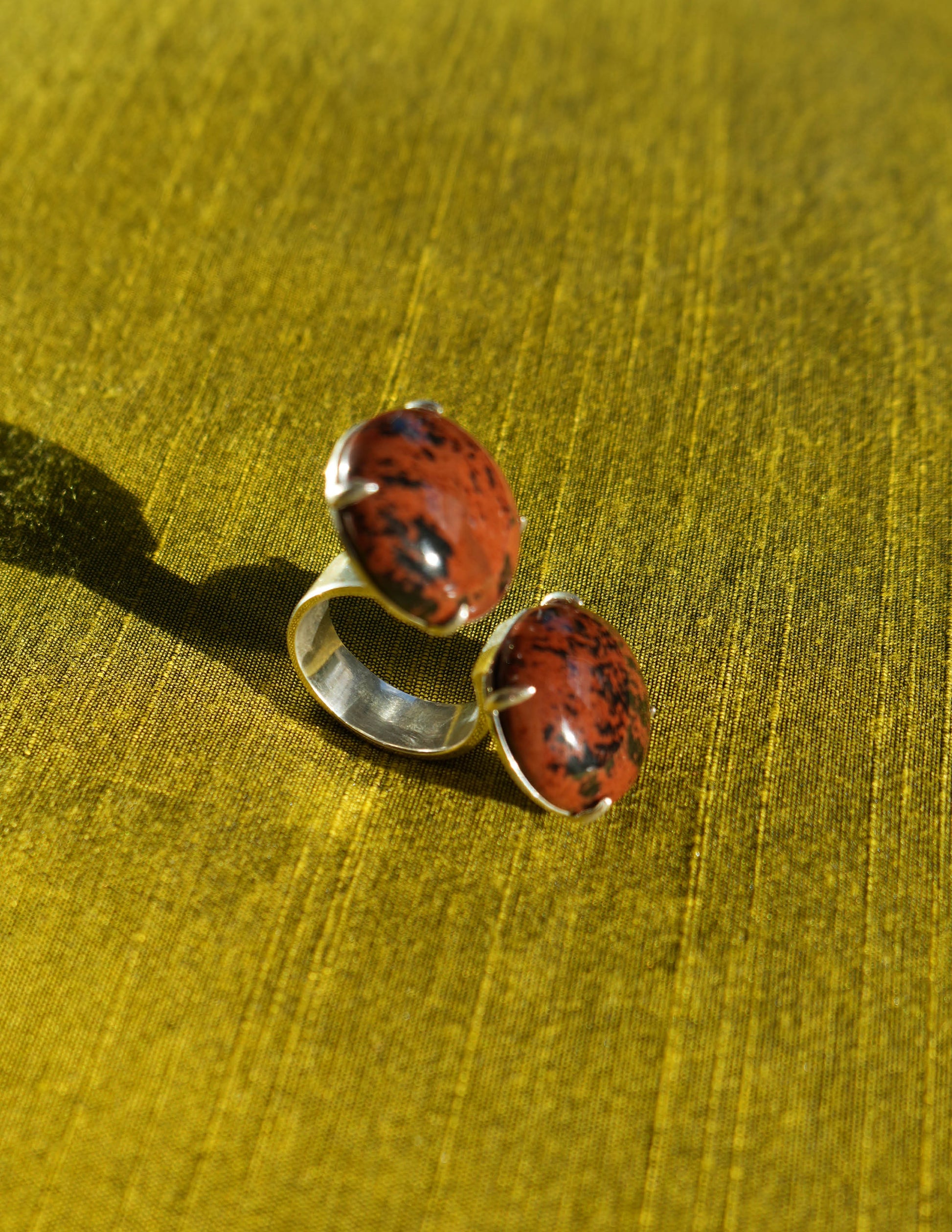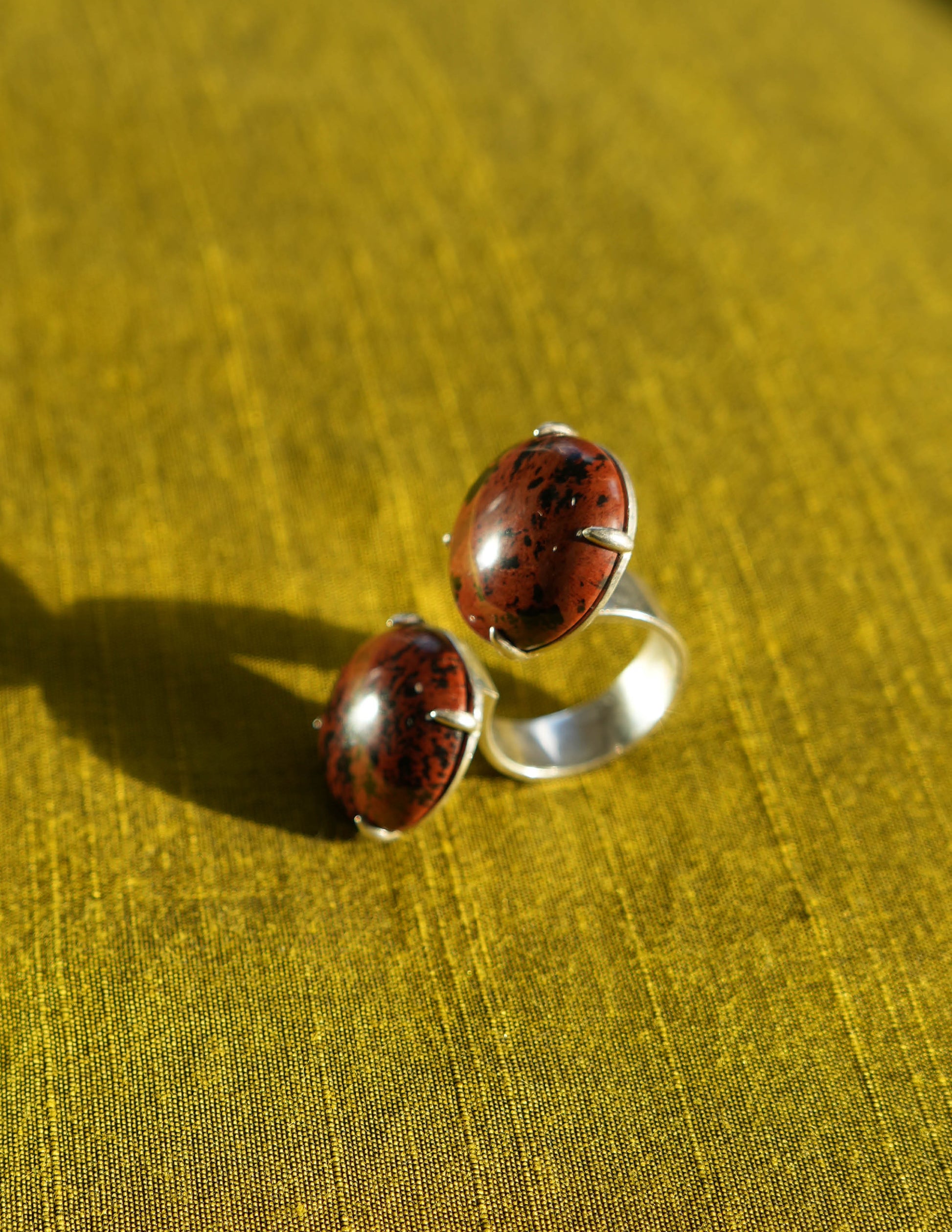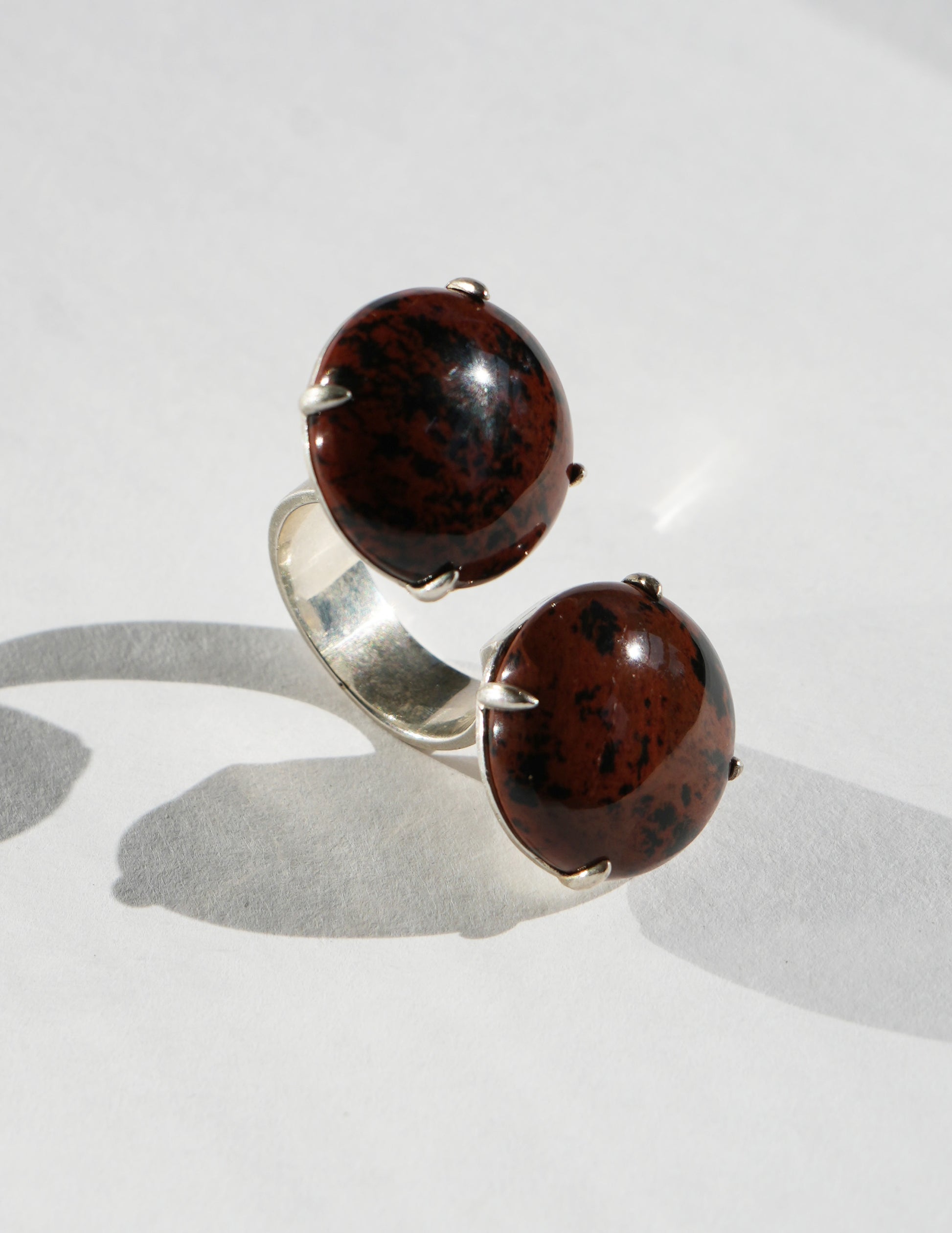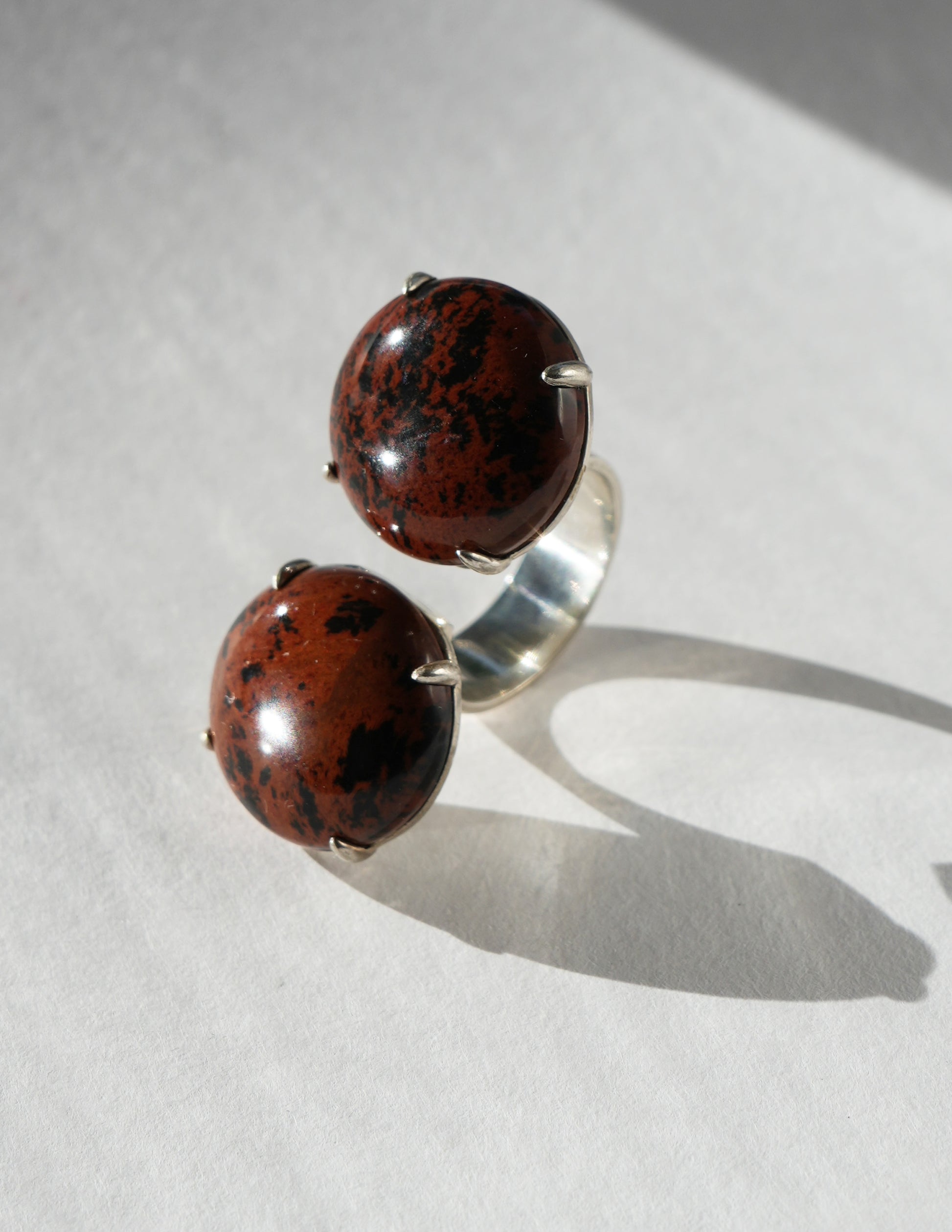 Indulge in the epitome of luxury with this ring made in collaboration with Chee Lee Designs. Crafted in sterling silver, this stunning piece features adjustable split-top discs, showcasing the mesmerizing cabochon cut speckled jasper stone held by delicate prongs. A harmonious blend of artistry and elegance, this ring is a symbol of sophistication and refined style.
