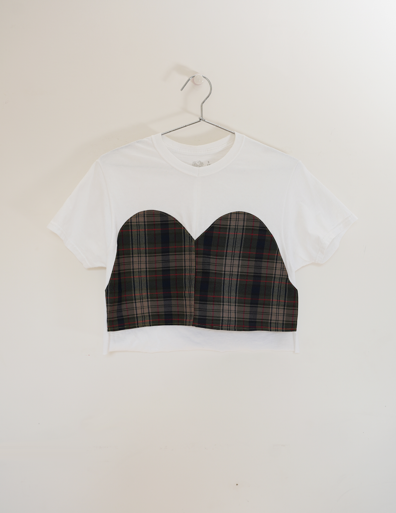 S/M Sweetheart Knit/Woven Checkered Cropped Tee