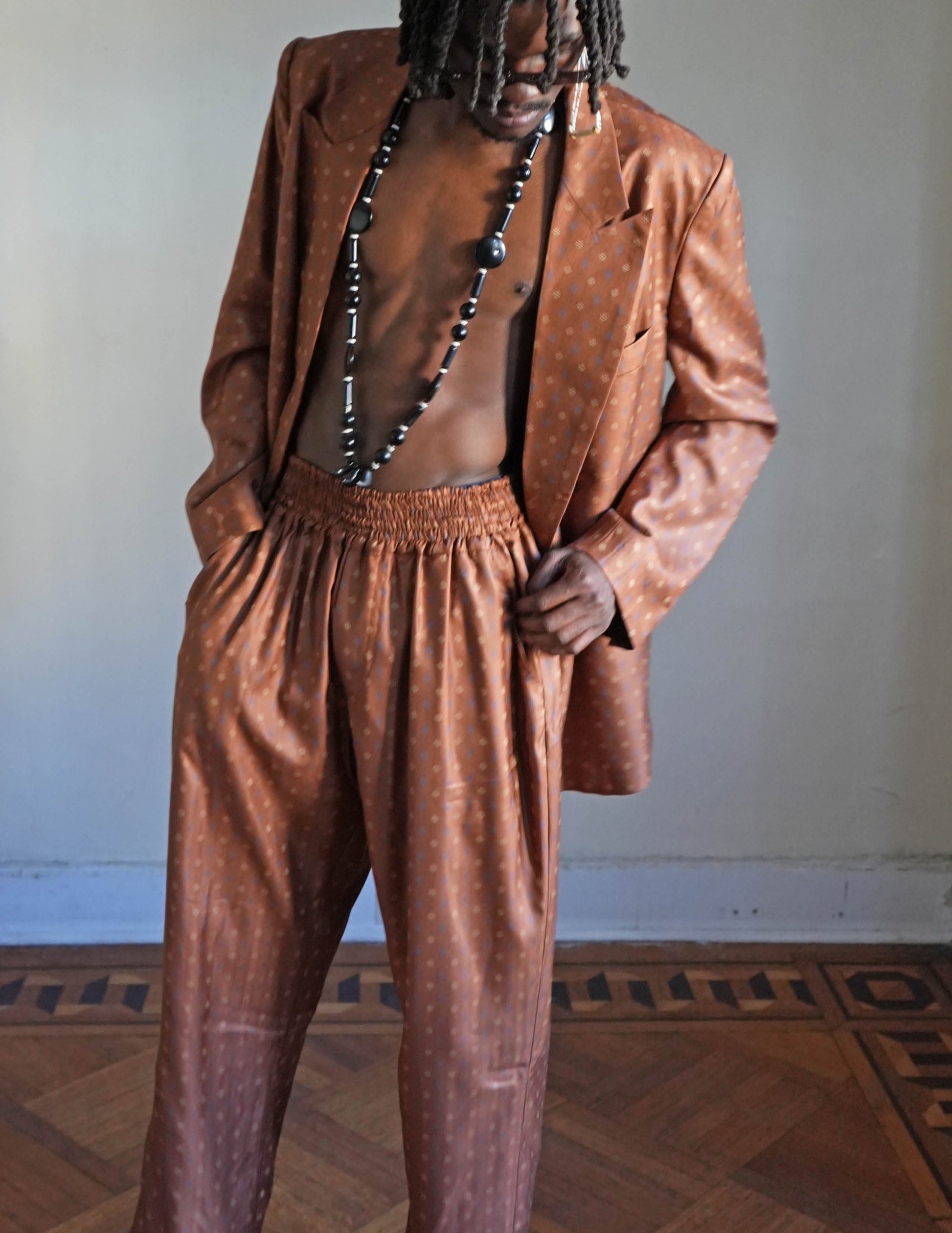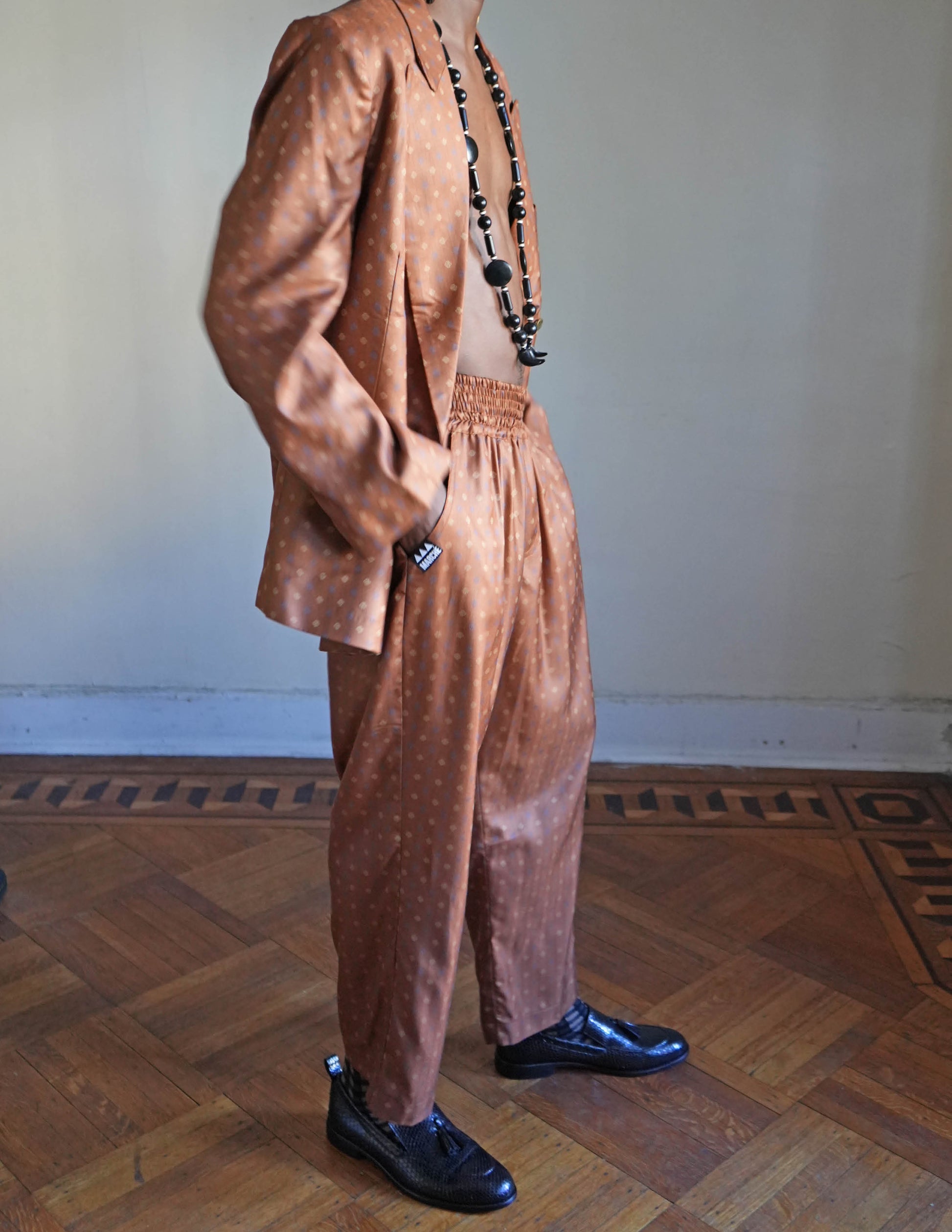 Equally cool and classic, our Syr pants were skillfully tailored in Senegal from glistening satin jacquard in a retro-inspired boxer silhouette with a dropped inseam. Style with our matching Syr blazer for sleek coordination.