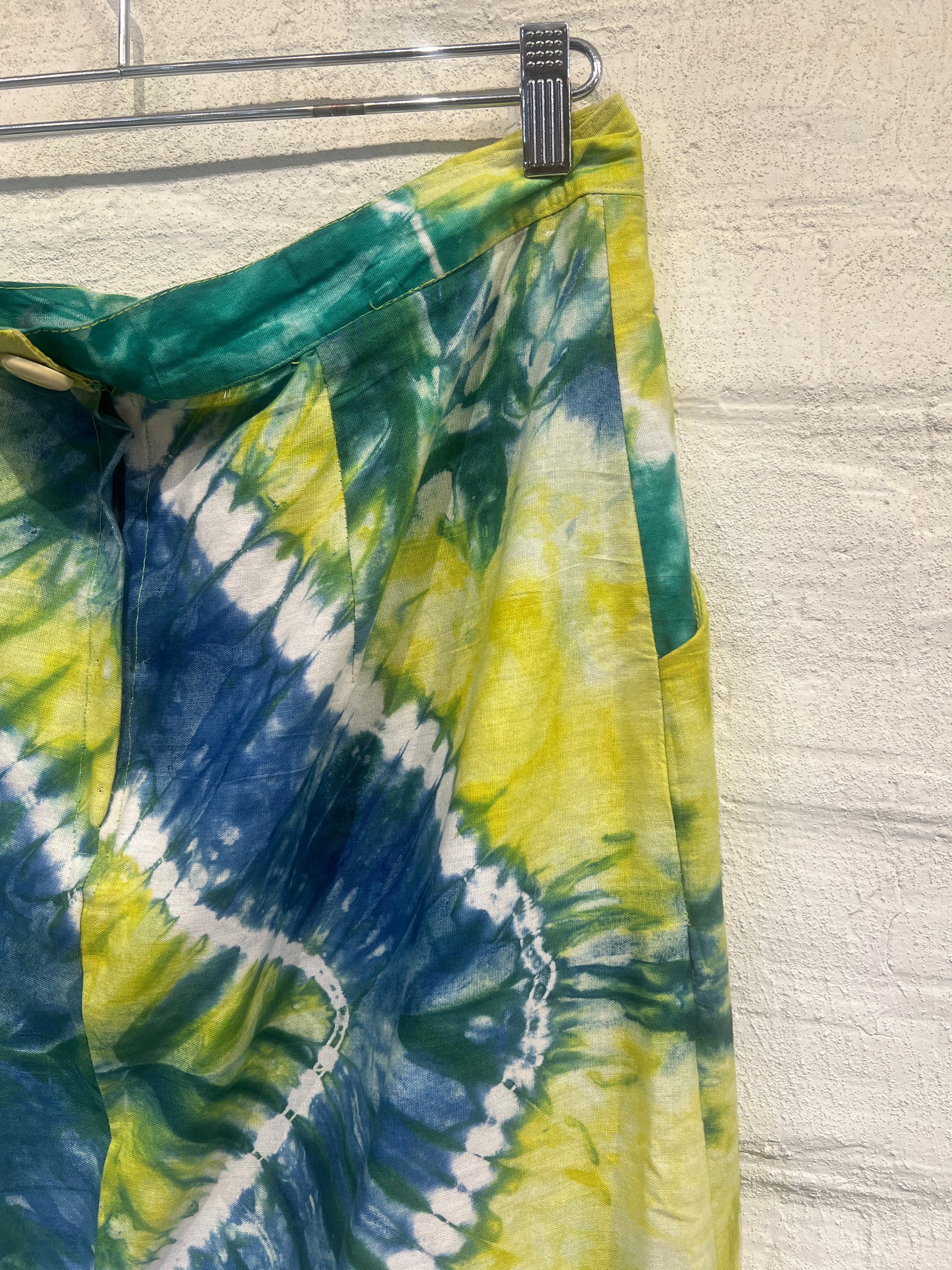 This tie dye pencil skirt features vibrant shades of green and blue, adding a unique touch to any outfit. Made from dyed cotton this skirt is a versatile addition to your wardrobe that can be dressed up or down for any occasion.