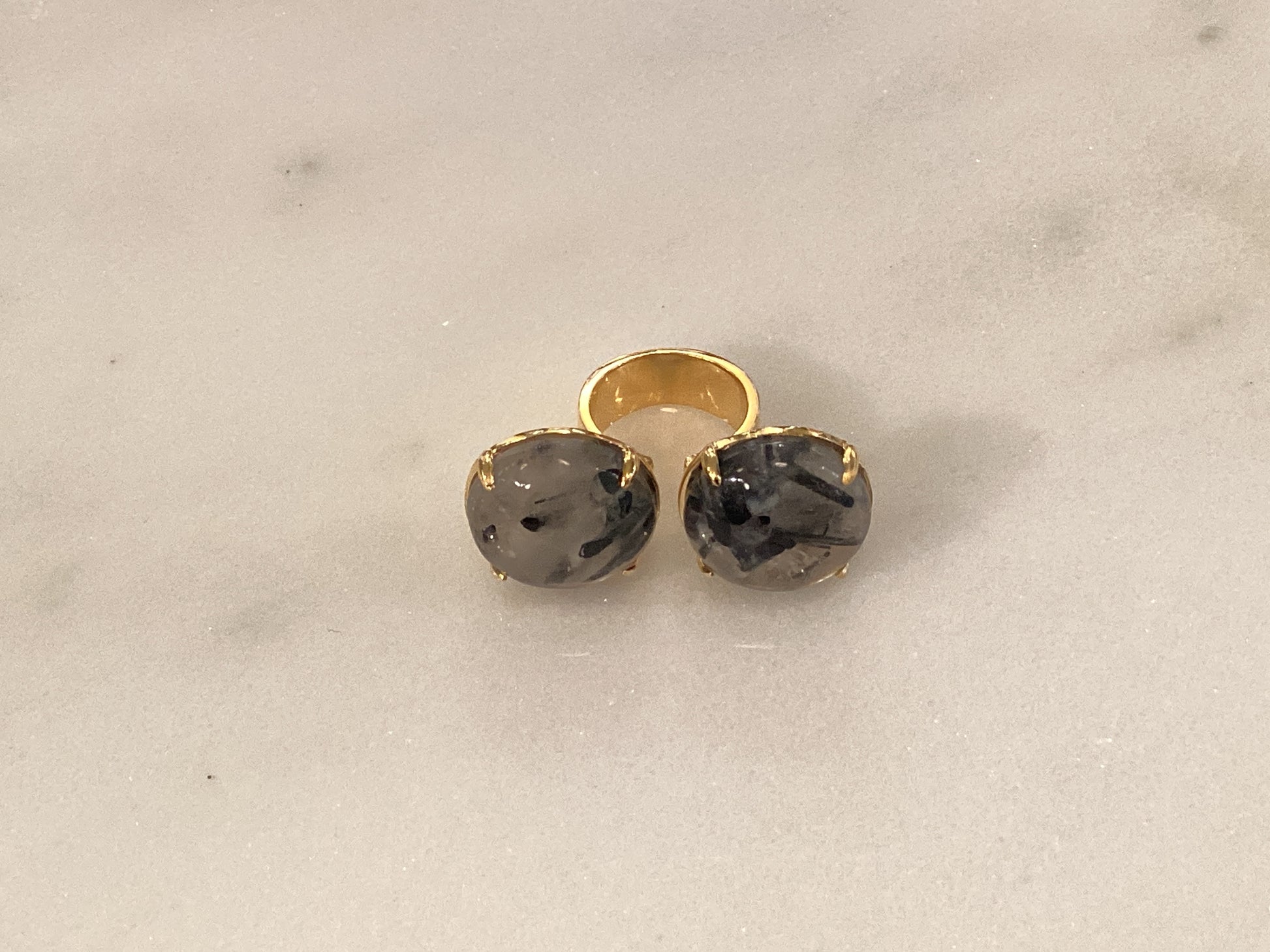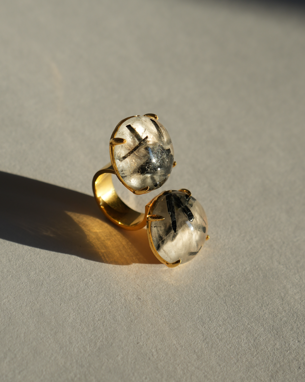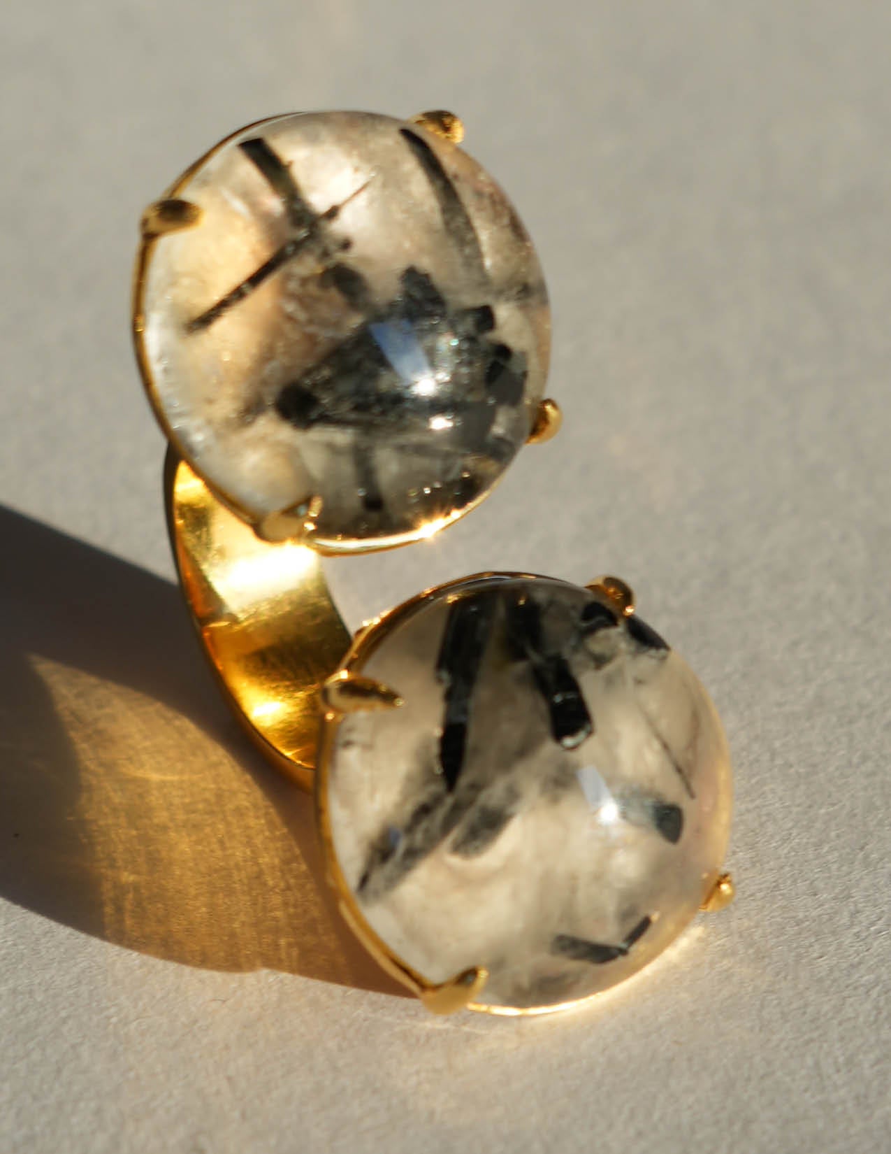 Tourmalated 24K Split Top Disc Ring - Diasporan Voyage