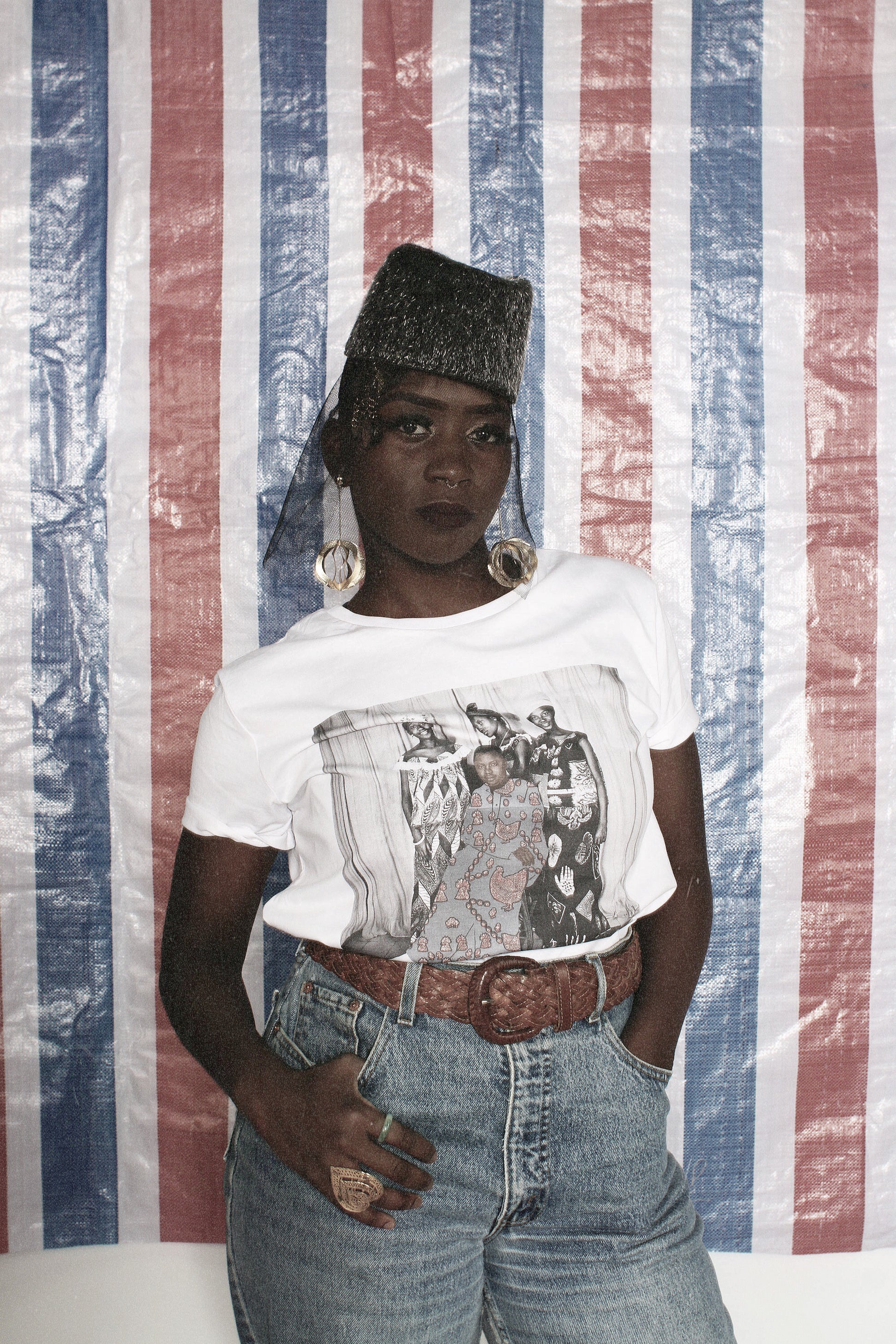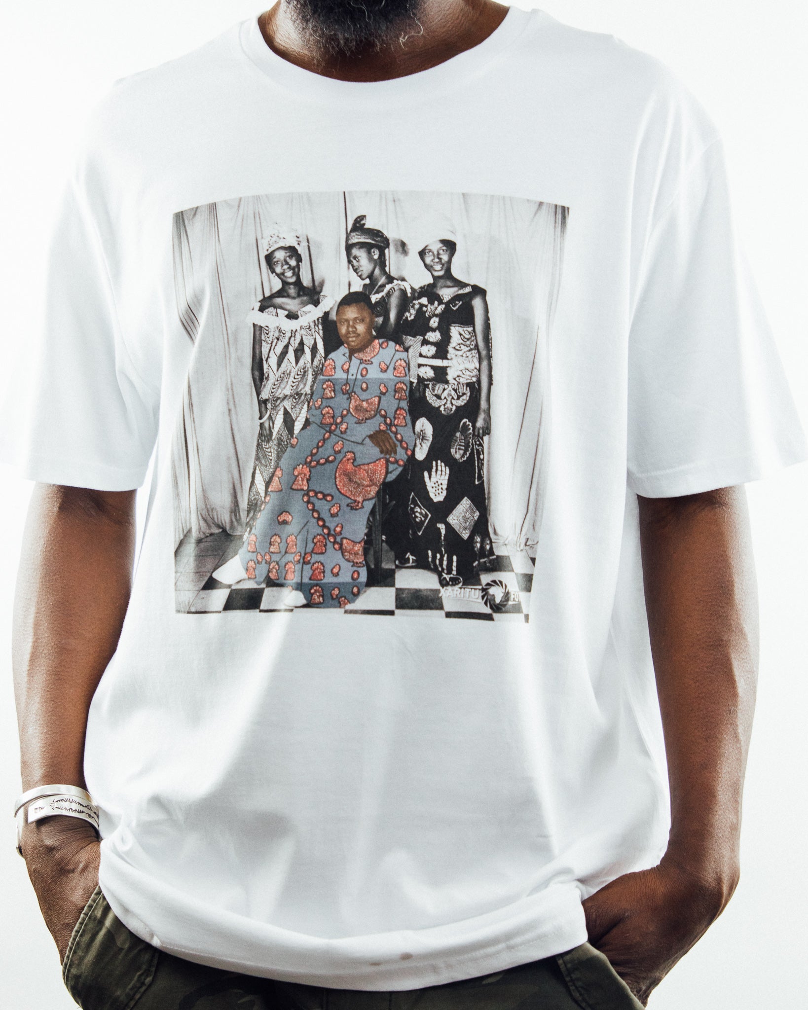 Portrait of a man surrounded by his sisters, photo by © Roger Da Silva taken in his Dakar studio.