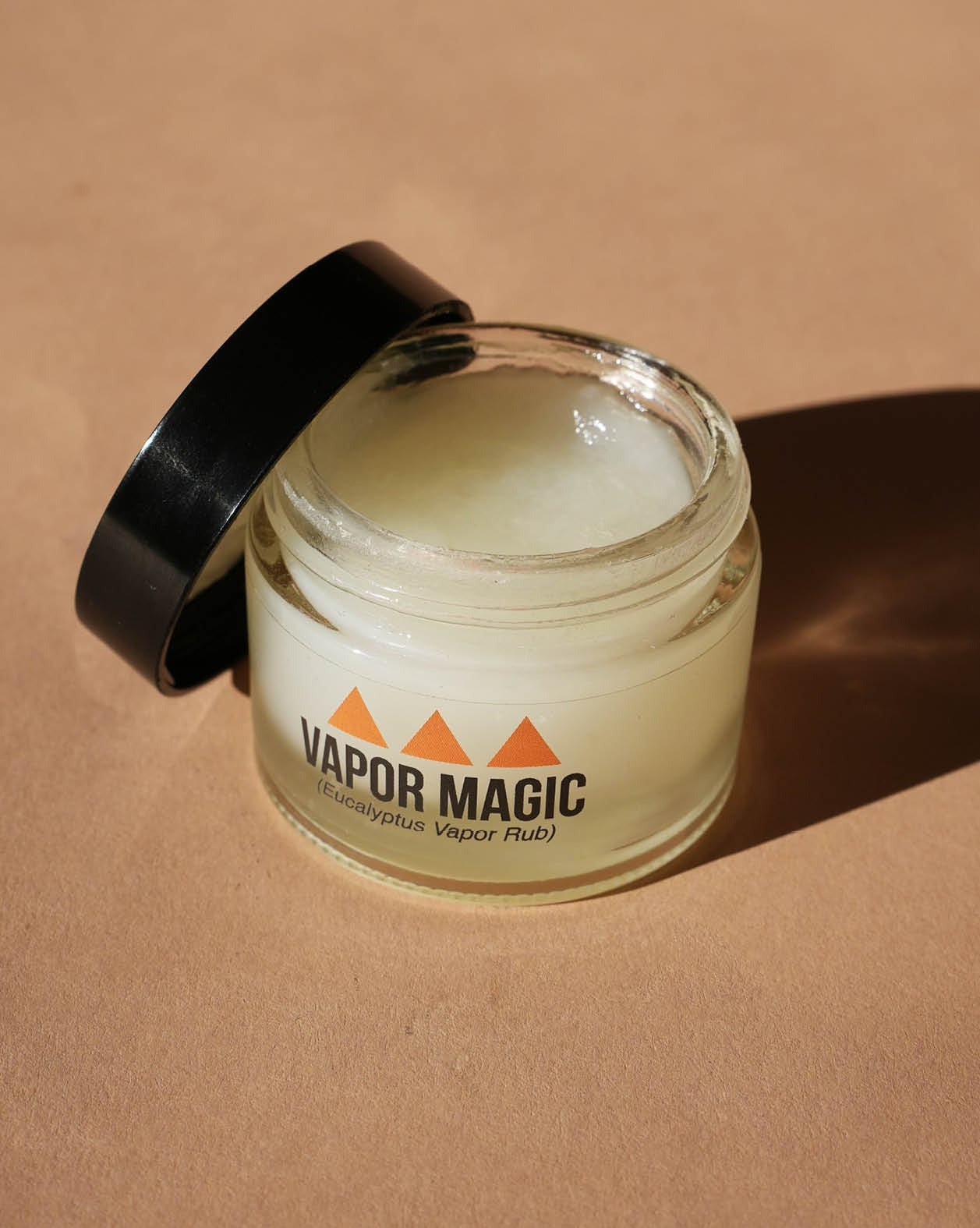 Our calming Vapor Magic rub is made with camphor to help relieve congestion and improve circulation, while eucalyptus, peppermint and rosemary oil deliver a soothing aroma.