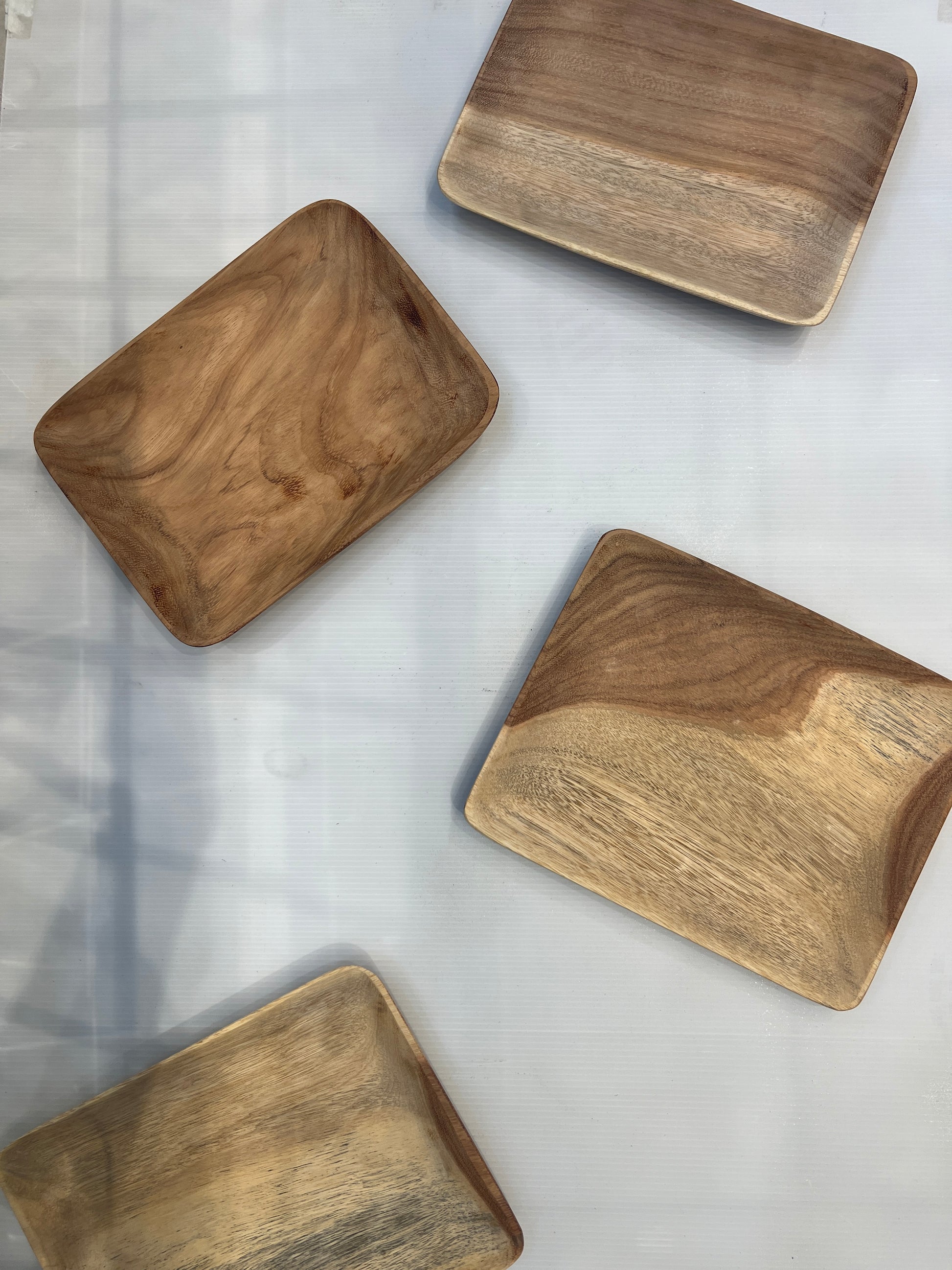 Skillfully made Wooden Plates from Senegal, with an average size of 9 1/2" x 7" and a natural, uncoated appearance. Slight variability in sizes and color may occur.