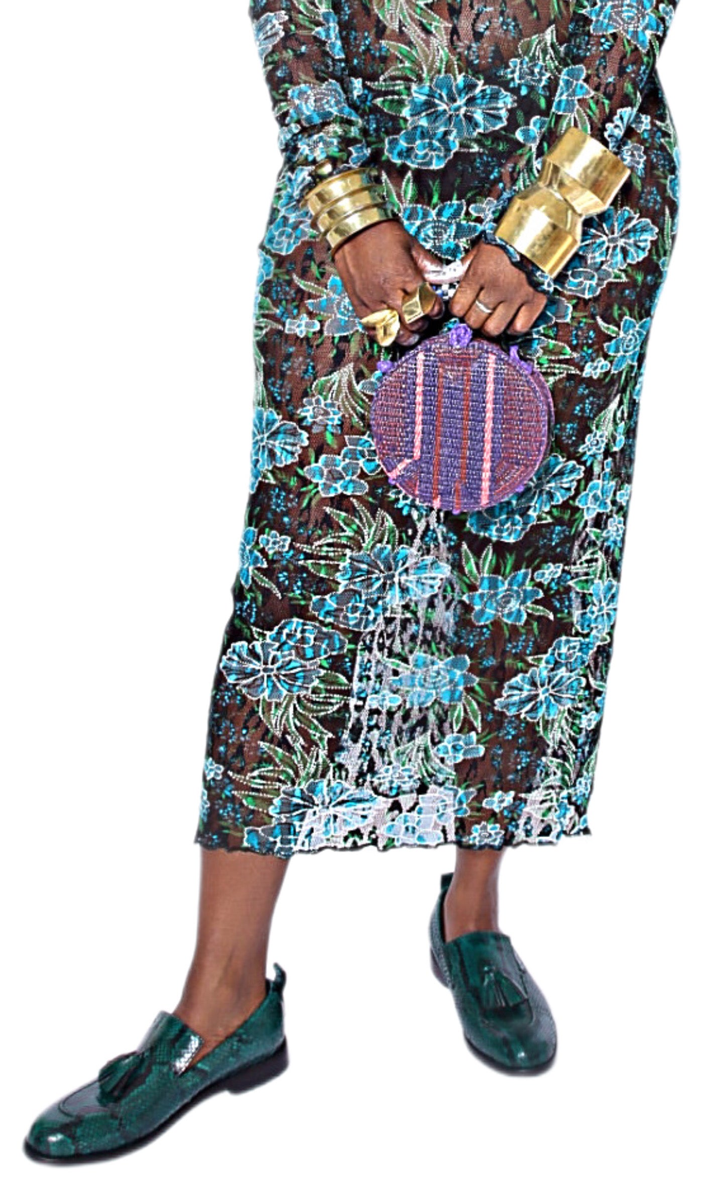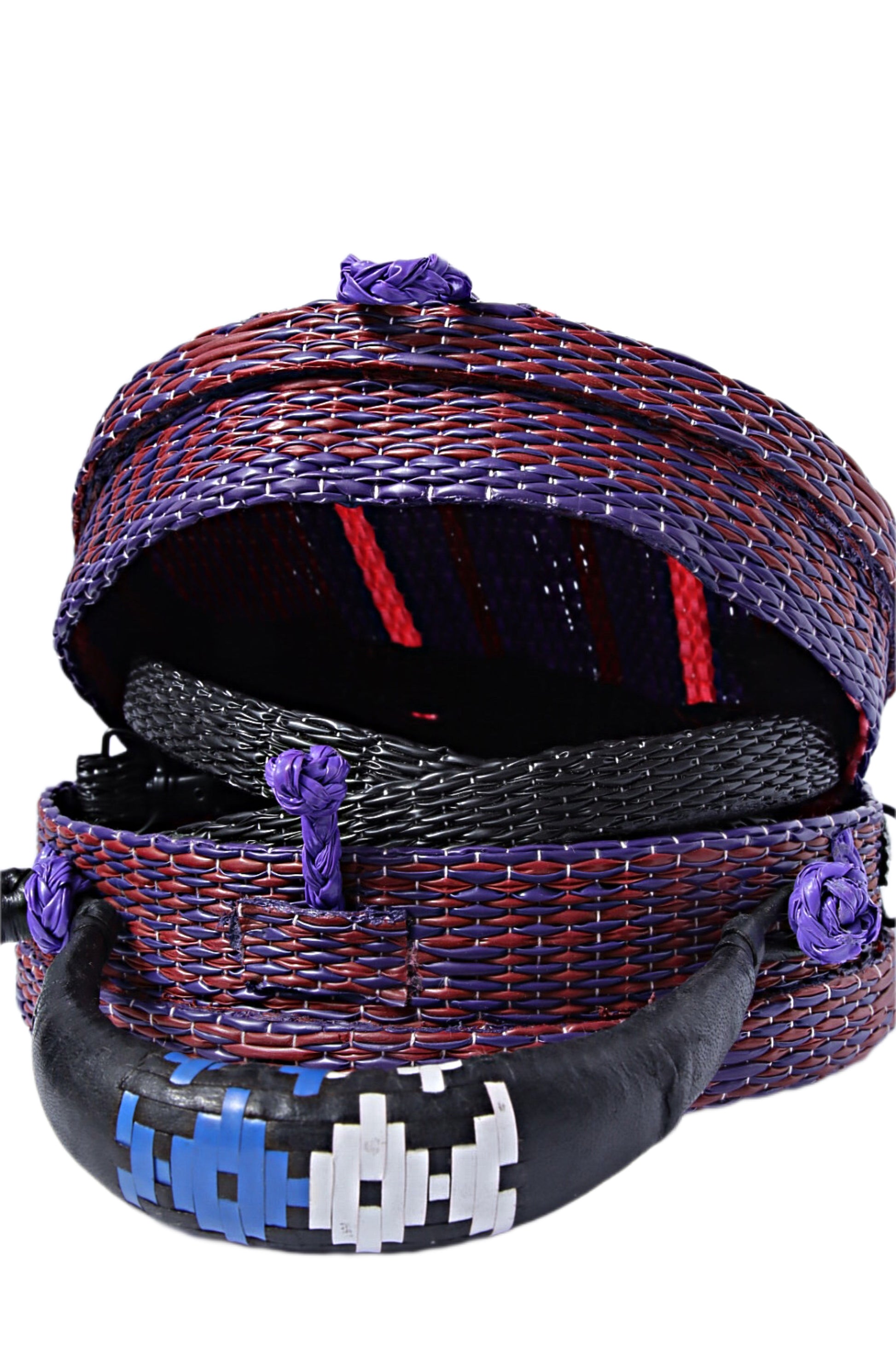 This bag belongs to our collection that expresses raw and time-honored creativity. Each one is artfully hand-fashioned from upcycled Senegalese floor mats, while the handles are actually leather and vinyl necklaces originally made and worn by Senegal’s Baye Fall– a brotherhood that preserves traditional arts & crafts techniques to help future generations.
